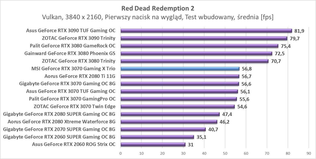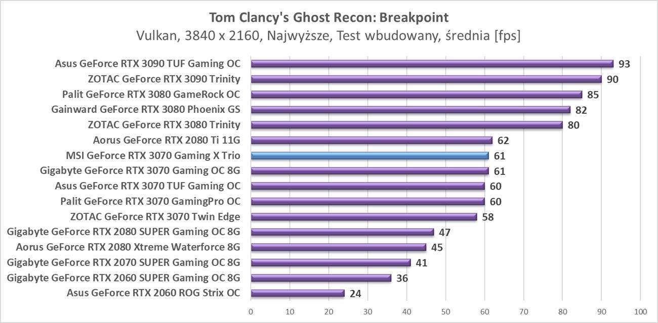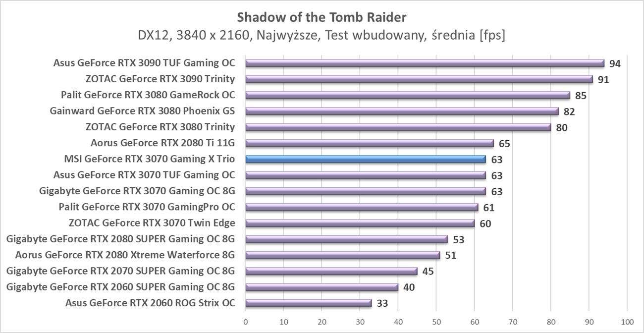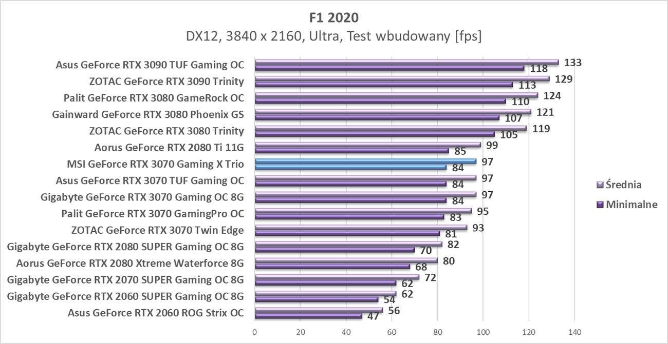 Testy MSI GeForce RTX 3070 Gaming X Trio w rozdzielczości 3840 x 2160
