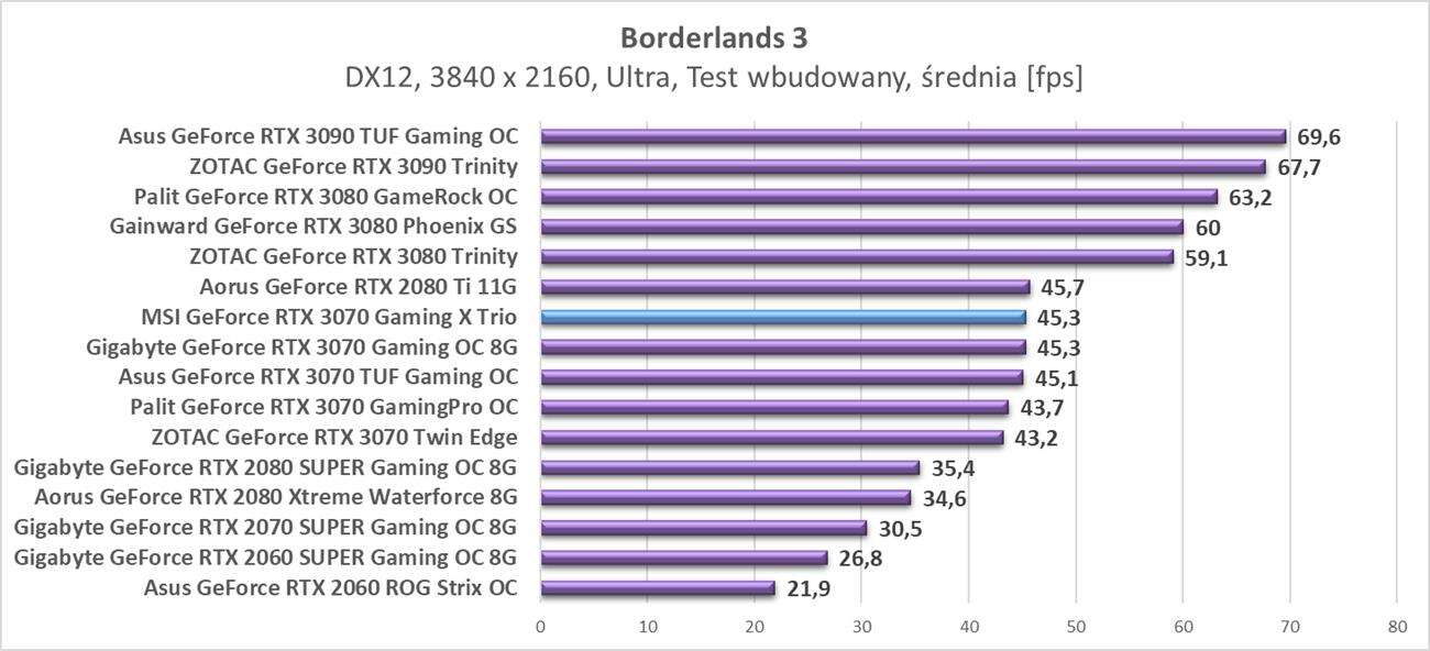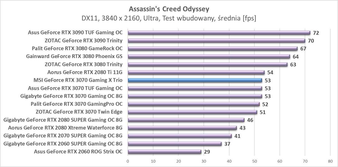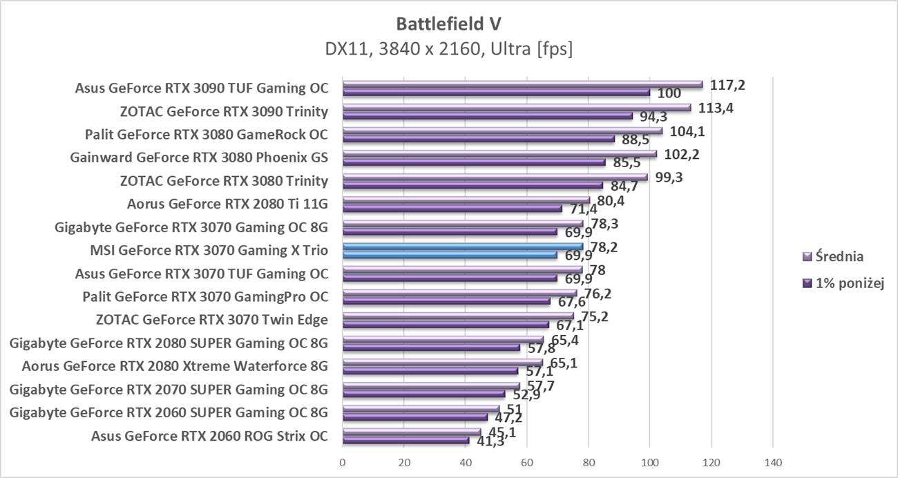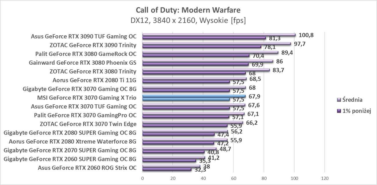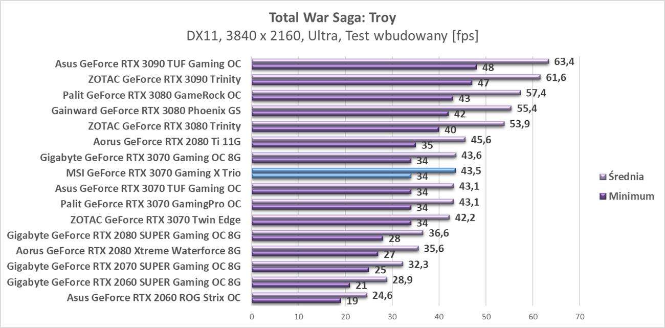 Testy MSI GeForce RTX 3070 Gaming X Trio w rozdzielczości 3840 x 2160