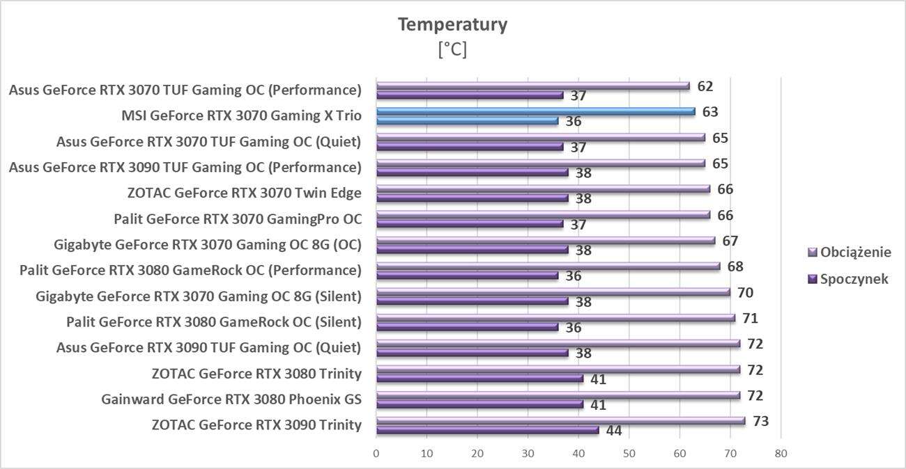 Temperatury, głośność, pobór mocy MSI GeForce RTX 3070 Gaming X Trio