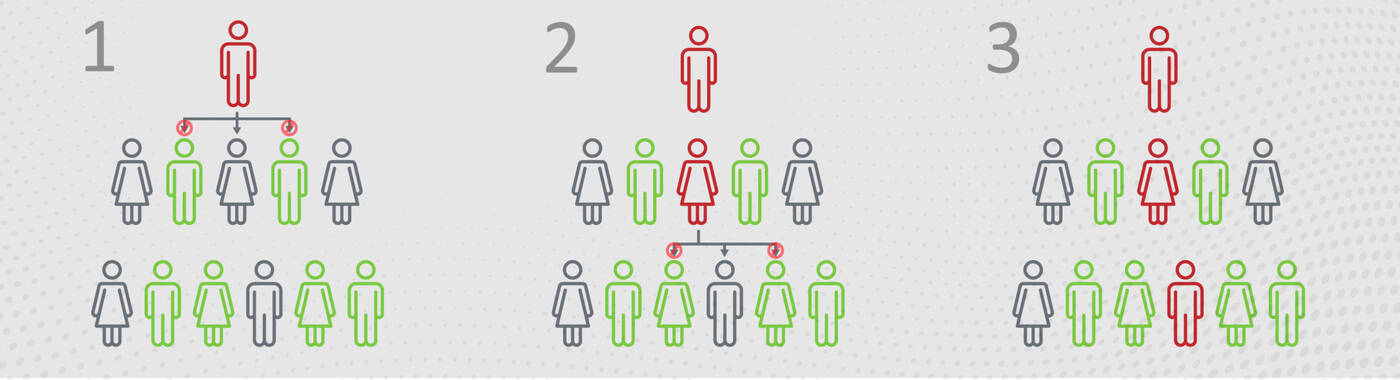 Aby zobrazować założenia odporności stadnej, pozwolę sobie skorzystać z grafik przygotowanych przez serwis Technology Networks. Widać na nich, jaka jest różnica pomiędzy społeczeństwem, w którym nikt nie jest odporny (oczywiście poza nielicznymi osobami, u których występuje naturalna odporność) a takim, gdzie część przeszła już zakażenie. W pierwszym przypadku kontakty międzyludzkie powodują rozprzestrzenianie wirusa – w efekcie po pewnym czasie niemal wszyscy jednocześnie są nosicielami SARS-CoV-2. W drugim natomiast osoby, które przeszły chorobę, nie zarażają już pozostałych, natomiast rozprzestrzenianie odbywa się tylko wtedy, gdy dojdzie do kontaktu pomiędzy zakażonym, a nieodpornym. Wyłączając, rzecz jasna, inne metody transmisji, choć warto mieć na uwadze, że to właśnie droga kropelkowa stanowi największy problem.