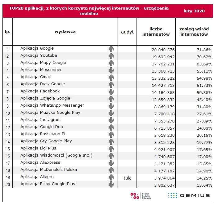 Gemius opublikował listę najpopularniejszych aplikacji wśród polskich użytkowników smartfonów Zdecydowanie królują wśród nich programy Google’a. Z wielu z nich Polacy korzystają całkowicie nieświadomie.