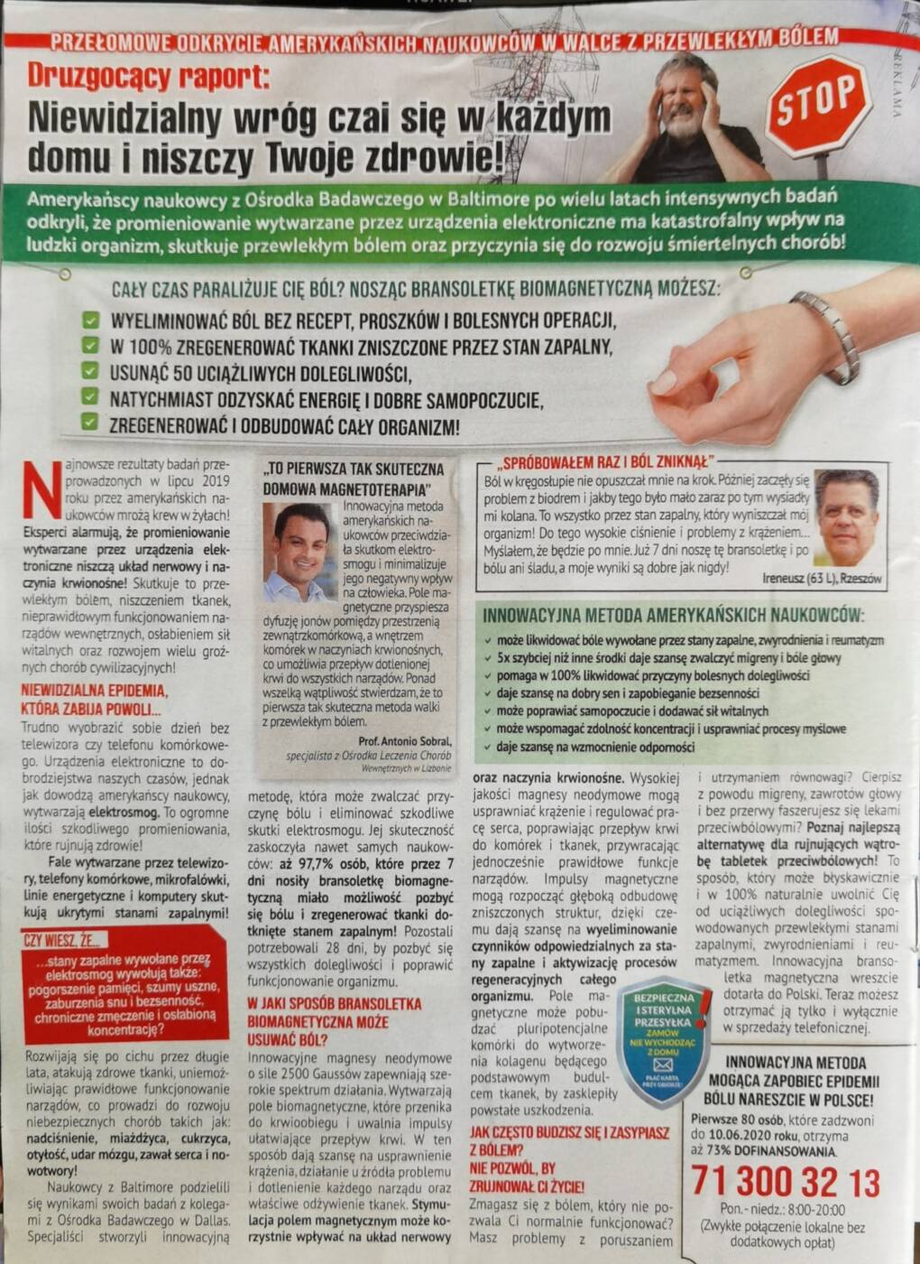 Temat wymyślonego elektrosmogu oraz potencjalnych zagrożeń związanych z polem elektromagnetycznym jest w ostatnim czasie bardzo gorący. Dosłownie, bo to właśnie z tego powodu w Europie spłonęło już ponad 150 nadajników sieci komórkowej, również w Polsce. W mojej opinii ublikując takie reklamy Na Żywo przyczynia się do podsycania nastrojów społecznych.