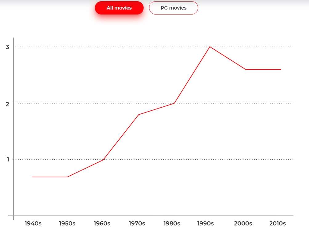 Portal Buzz Bingo opublikował obszerne zestawienie zawierające nie tylko tytuły filmów, w których wulgaryzmów jest najwięcej, ale również nazwiska aktorów i bohaterów filmowych, którzy rzucanie inwektywami opanowali do perfekcji.  Wykazano także jak od lat 40.XX wieku wzrosło użycie wulgaryzmów w filmach. Okazuje się, że punktem kulminacyjnym były lata 90.XX wieku, kiedy na 1000 wypowiadanych w danej produkcji słów występowały średnio  3 przekleństwa. Potem ich liczba nieco spadła i utrzymuje się na dość stałym poziomie.