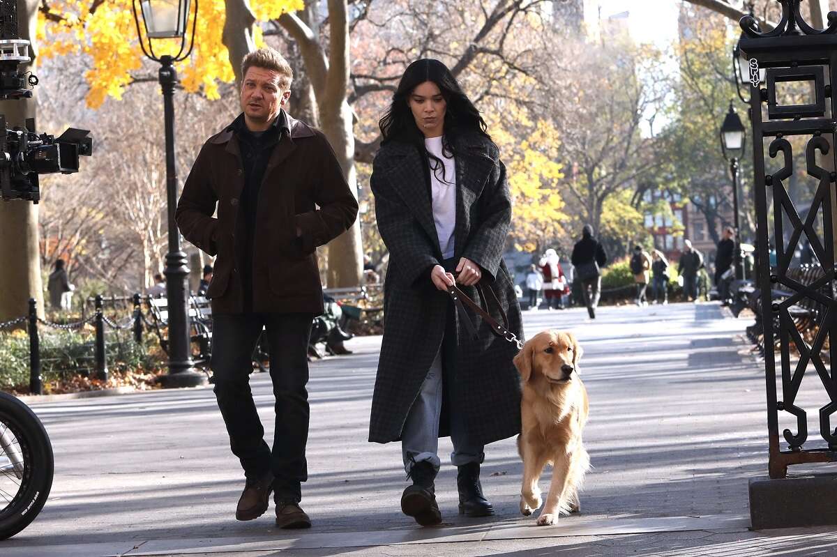 Hailee Steinfeld i Jeremy Renner na planie serialu Hawkeye