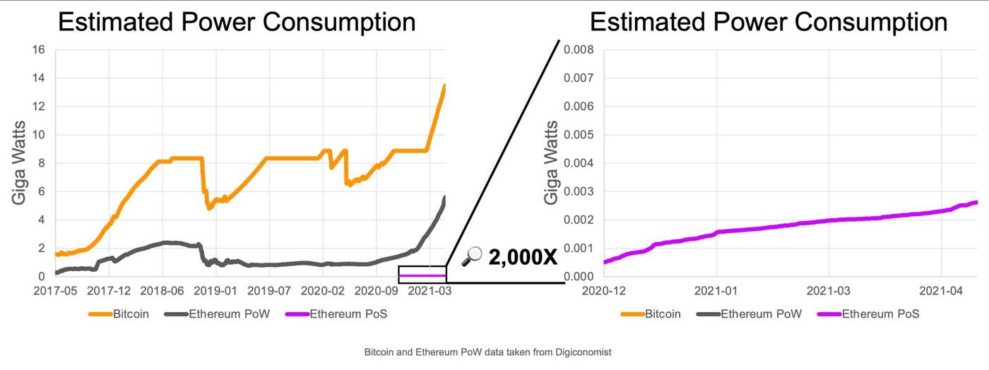 Ethereum to główna kryptowaluta, która wydobywana jest na kartach graficznych. Okazuje się, że może się to niedługo zmienić. Twórcy chcą bowiem przez z Proof of Work na Proof of Stake. Zmiana nastąpi w ciągu najbliższych miesięcy i oznacza ona brak konieczności udostępniania mocy obliczeniowej, które pożera całą masę energii elektrycznej. Wedle szacunków zużycie energii spadnie aż o 99,95%. Może wreszcie coś zmieni się na rynku grafik i karty będą dostępne w normalniejszych cenach?