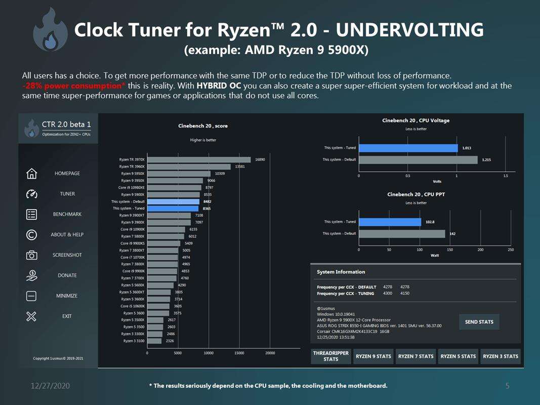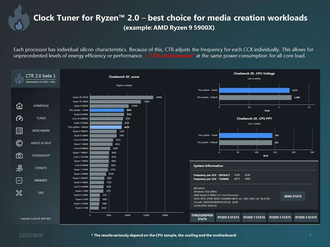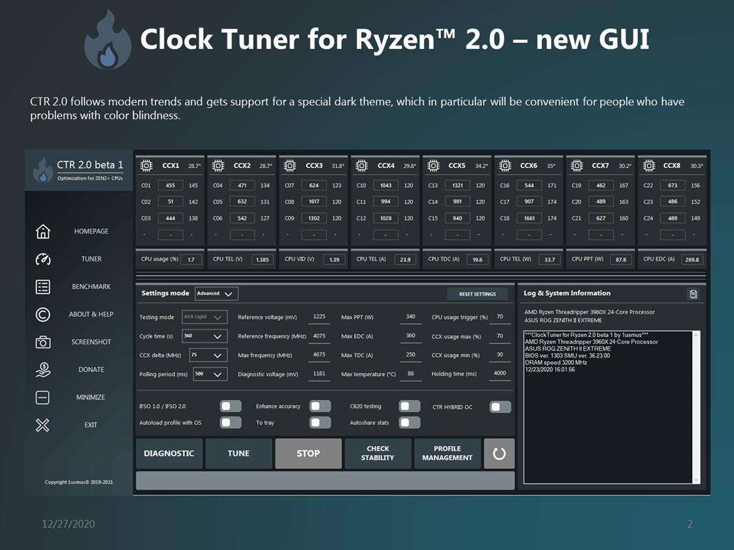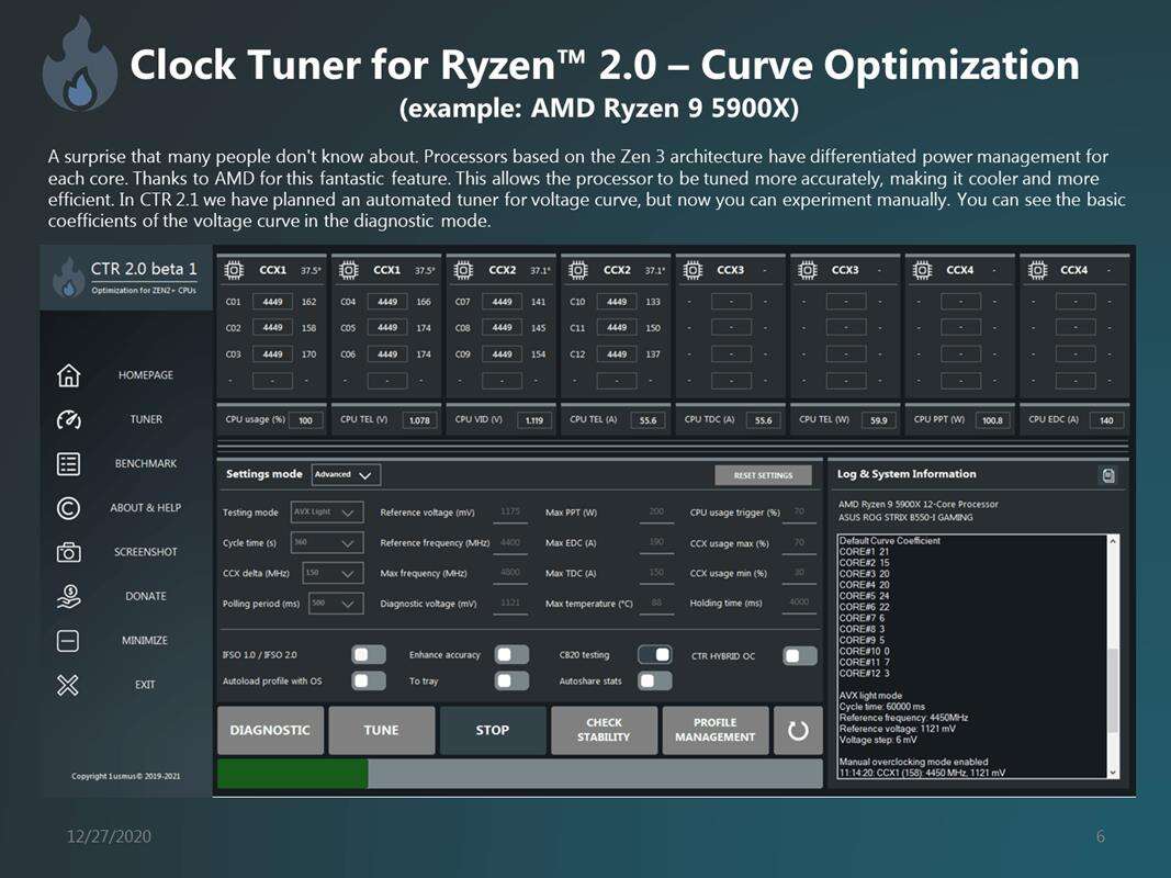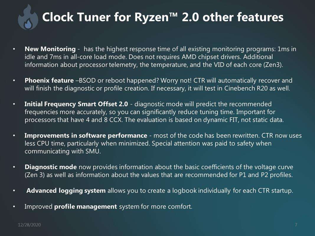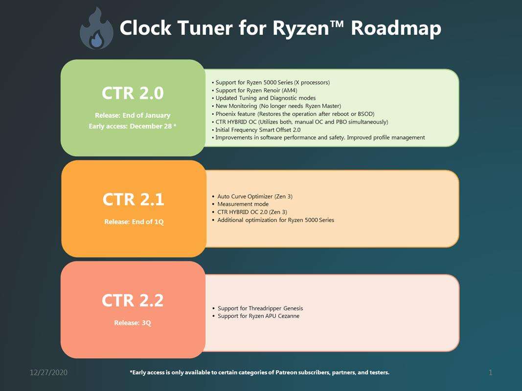 Co ciekawe, twórca ogłosił, że CTR w wersji 2.1 doczeka się premiery w pierwszym kwartale 2021 roku, zapewniając automatyczny optymalizator krzywej dla procesorów Zen3, nową wersję hybrydowego przetaktowywania oraz nowy tryb pomiaru.