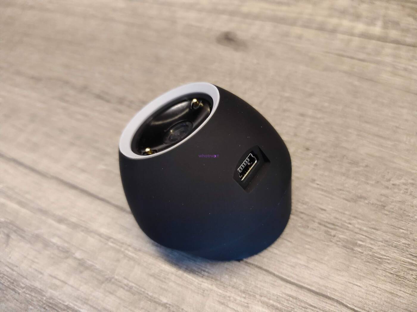 Po lewej stronie R10 swoje miejsce otrzymał przycisk on/off, dioda funkcyjna i wejście mikrofonu, a po prawej klapka do podważenia, pod którą znajdziemy slot na kartę pamięci, ukryty przycisk reset oraz port zasilania. Przód wieńczy oczywiście obiektyw otoczony plastikową, ale posrebrzaną i wykończoną na lustro ramką.