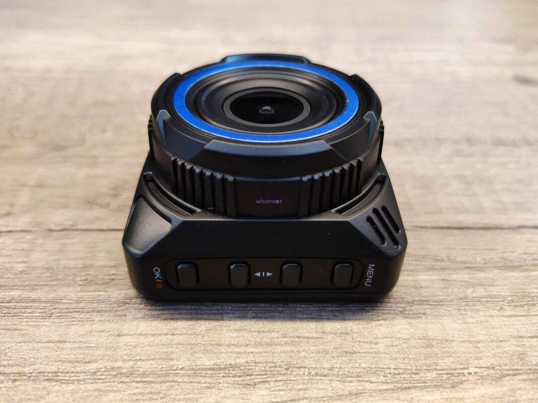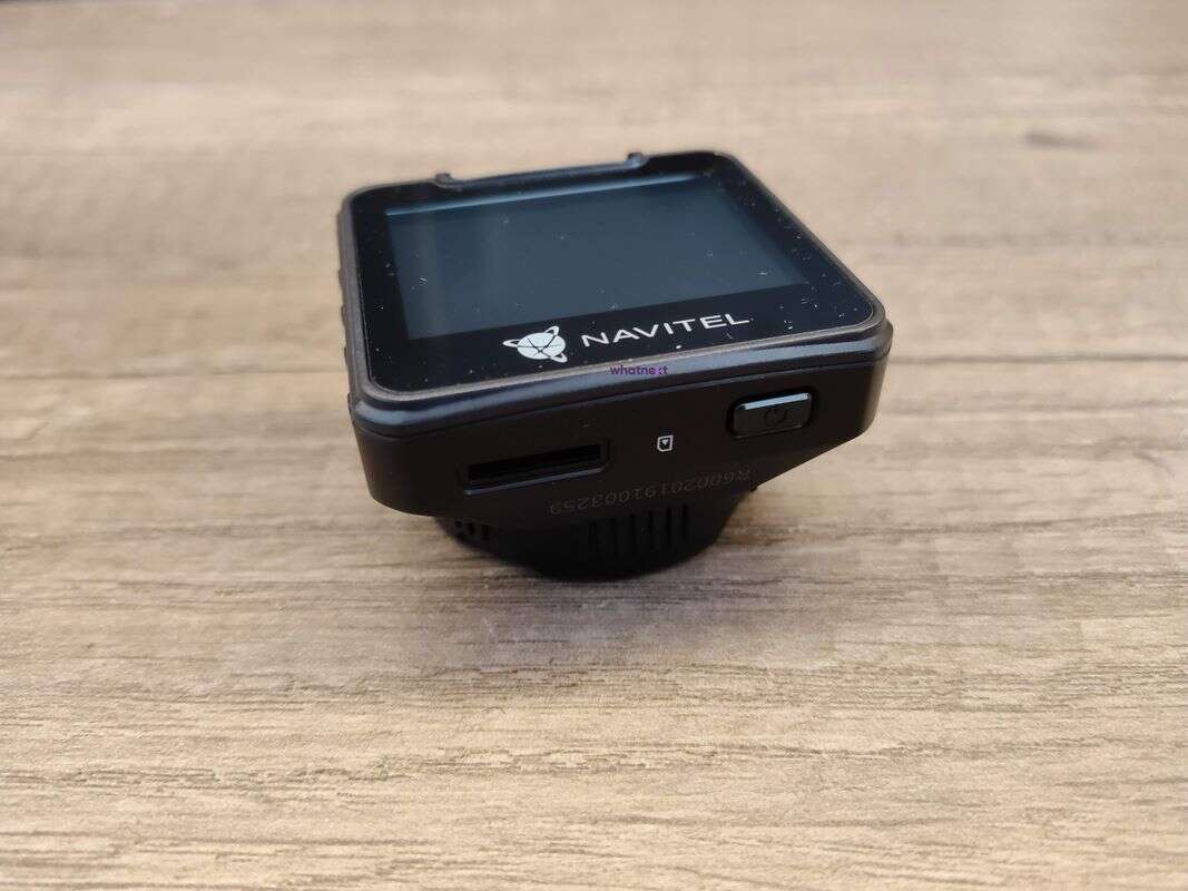 Na górnej krawędzi z kolei znalazła się tylko wnęka ze stykami do „wsunięcia” uchwytu razem z przełącznikiem go blokującym. Jest to dobre rozwiązanie, jako że uchwyt na szybę przyczepiamy za pomocą wytrzymałej taśmy montażowej na jeszcze innym, oddzielnym rodzaju „saneczek”, co otwiera możliwość przekładania wideorejestratora między dwoma autami.
