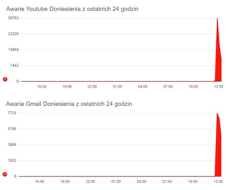 W serwisie Downdetector zgłoszono już prawie 30 tys. awarii serwisu YouTube (w większości chodzi o sam dostęp do witryny) i przeszło 8 tys. problemów z Gmailem. W przypadku klienta pocztowego najczęściej zgłasza się problem z zalogowaniem, choć ja nie mogłam nawet wejść na witrynę.