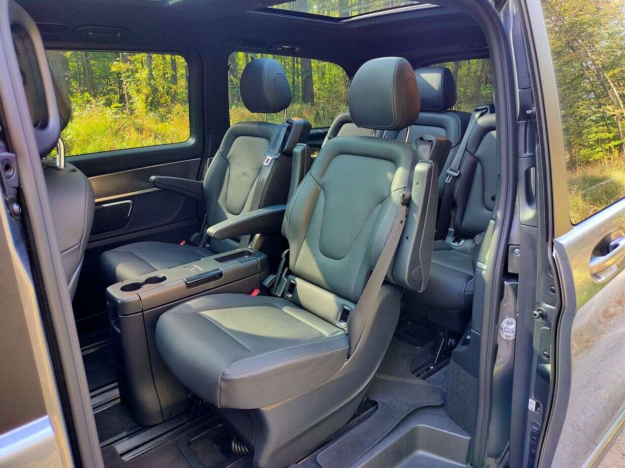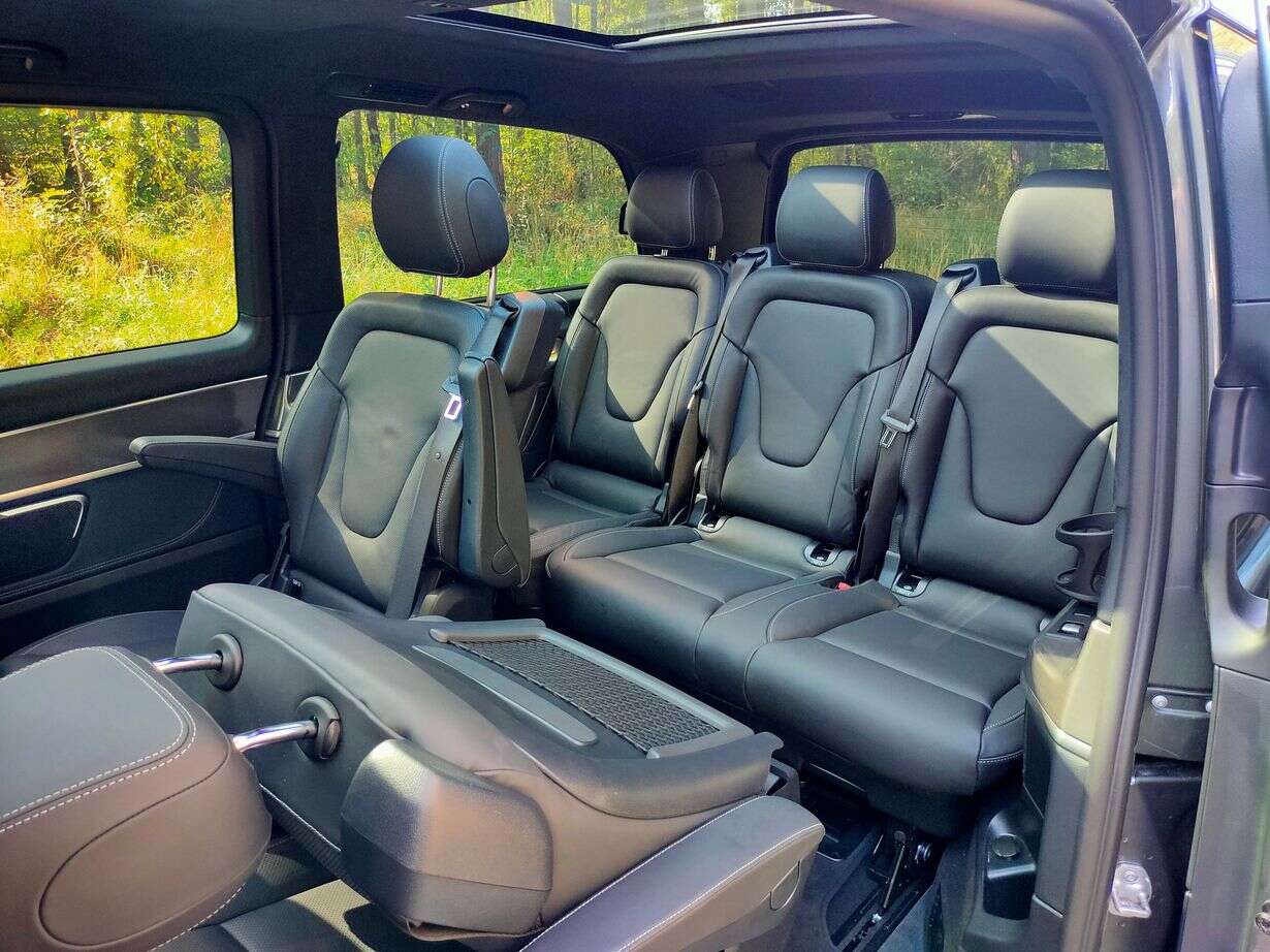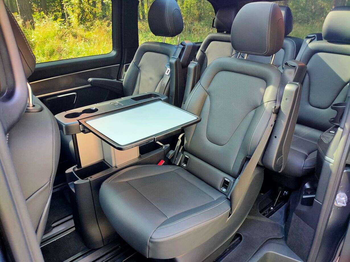Nic nie zmieniło się w kwestii komfortu podróżowania. W dalszym ciągu mamy bardzo dobrze wykończone wnętrze. Design deski rozdzielczej nadal jest elegancki, stonowany, ale dobrze przemyślany. Pomimo tego, że po liftingu Vito i V Klasa są bardzo podobne z zewnątrz, wnętrze to dwa różne światy. Bohater artykułu oferuje świetne materiały, bardzo dobre jak na vana wyciszenie. Nawet przy wyższych prędkościach. Przestrzeń w kabinie pozwala na komfortowe podróżowanie w przypadku kompletu podróżujących. W testowym modelu mówimy o siedmiu siedziskach. Dwa są z przodu. Dwa w kolejnym rzędzie siedzeń (tam też znajduje się bardzo praktyczny stolik). Z kolei na końcu, w trzecim rzędzie są… trzy fotele. Klasa V produkowana jest w trzech wersjach jeśli chodzi o długość. Wtedy też zmienia się pojemność bagażnika. Mamy więc startową, która mierzy 4,90 m i oferuje bagażnik na poziomie 610 litrów. Następnie jest wersja długa – 5,14 i 1030 litrów. Ostatnia to prawdziwy “kolos”, który mierzy 5,37 m i oferuje bagażnik o pojemności aż 1410 litrów.