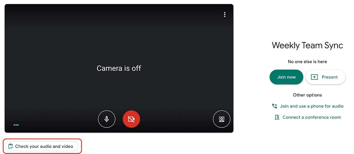 Samą funkcje możemy wykorzystać tuż przed wejściem na spotkanie, na ekranie pojawi się przycisk “sprawdź swoje audio i wideo”. Po kliknięciu otworzy się specjalne okno, w którym będziemy mogli zobaczyć podgląd swojej kamerki oraz nagramy krótki filmik, który pozwoli nam zobaczyć i usłyszeć, jak działa nasza kamerka i mikrofon.