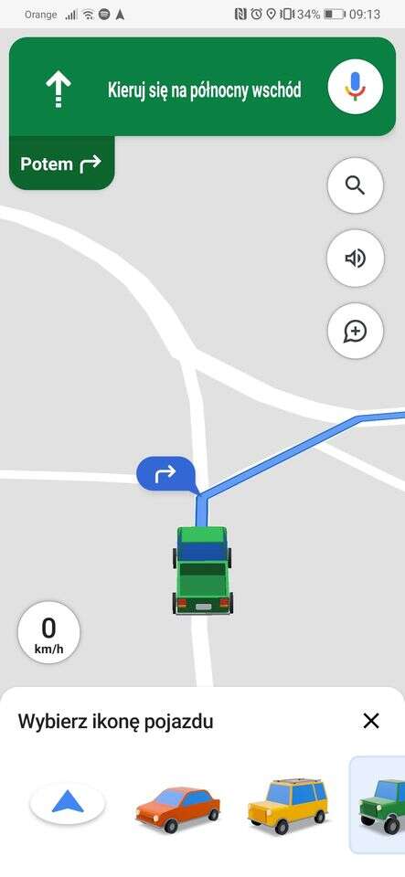 Wystarczy po uruchomieniu nawigacji kliknąć w niebieską strzałkę i wybrać, który samochodzik najbardziej nam odpowiada. Mapy Google wyświetlą trzy dostępne opcje, które oczywiście w każdej chwili możemy zmienić.
