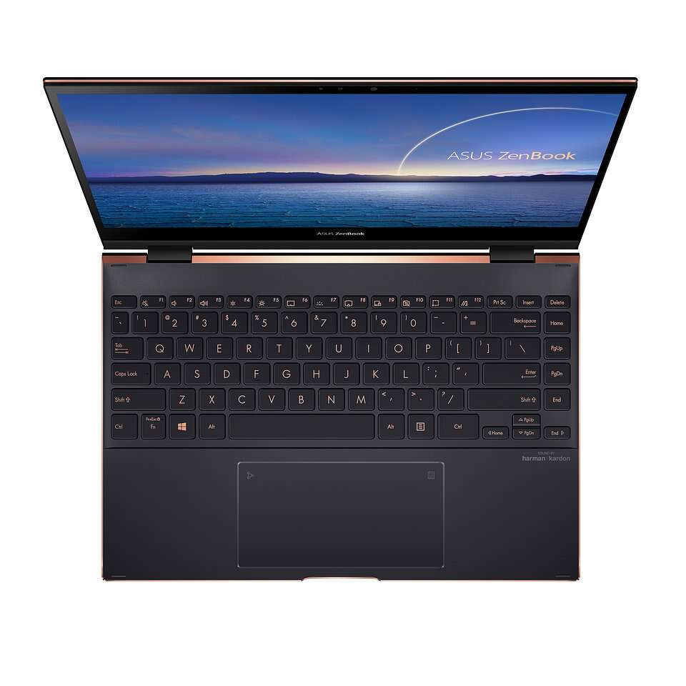 Atrakcyjny ZenBook Flip S wyróżnia się elegancją z akcentami o diamentowym szlifie w odcieniu Red Copper, które idealnie uzupełniają jego ponadczasowe wykończenie w kolorze Jade Black. Nad klawiaturą umiejscowiony został dekoracyjny pasek wykonany ze szczotkowanego aluminium, który jest subtelnym elementem kompletującym wykończenie.