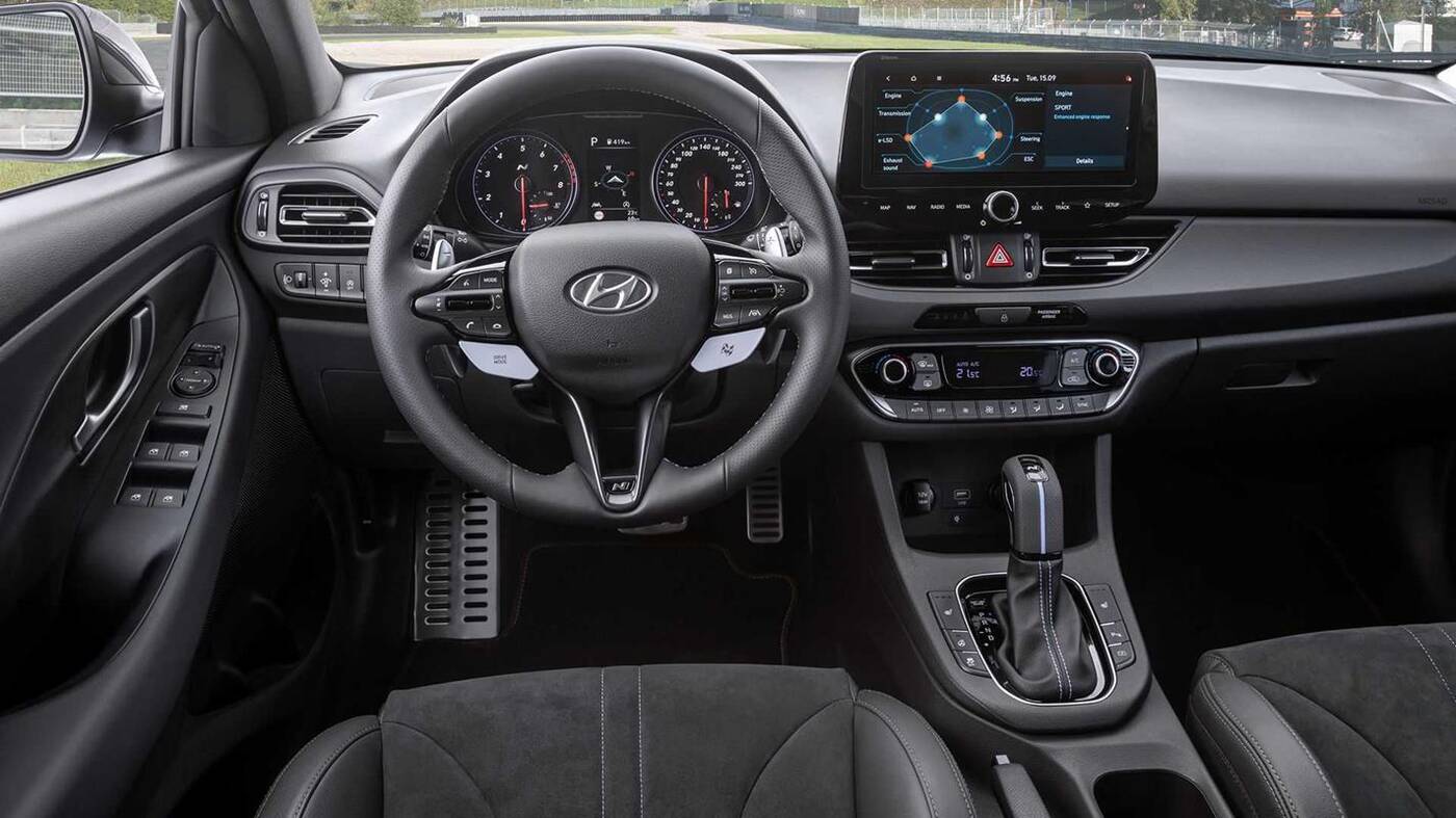 Wewnątrz i30 N względem zwyczajnego Hyundaia i30, to lżejsze o 2,2 kilogramów siedzenia, metalowe pedały, szwy Performance Blue, czy czarna tapicerka, która może być wykonana z tkaniny lub mieszanki sztucznego zamszu i skóry. Pakiet Performance kroi wagę o kolejne 14,4 kilogramów przez 19-calowe kute felgi, które owijają opony Pirelli P-Zero, za którymi siedzą nie 345, a 360 mm przednie tarcze hamulcowe.
