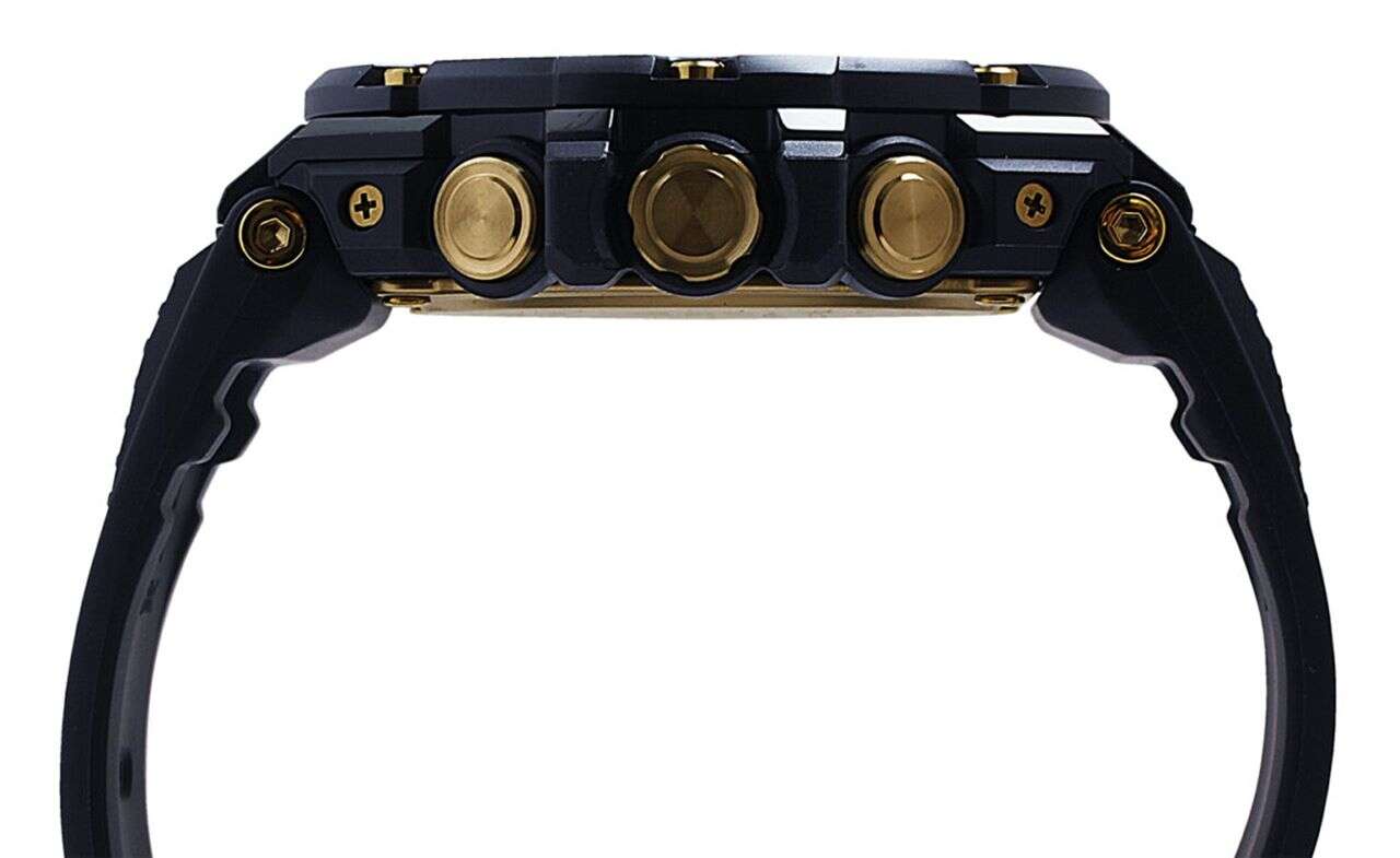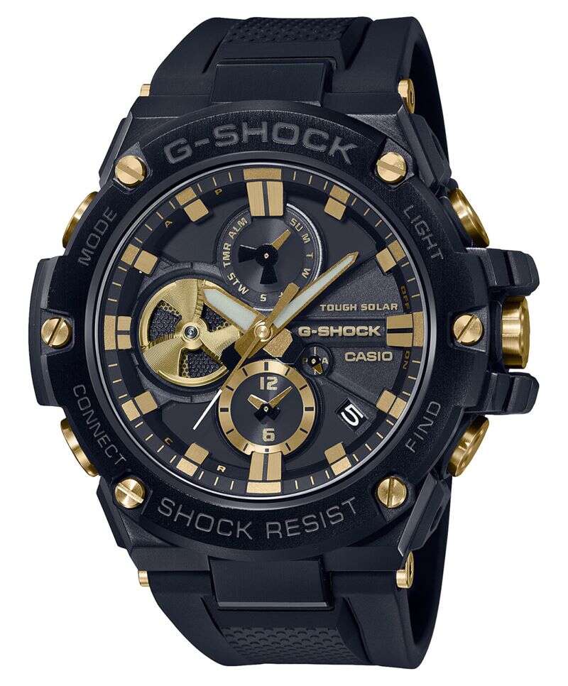Nowy zegarek G-Schock GSTB100GC-1A bazuje na agresywnej, 53,8 mm kopercie ze stali nierdzewnej i szeregu kanciastych, rozbudowanych linii, którą wieńczą wyróżniające się od reszty śruby w kolorze przycisków, koronki i elementów tarczy. O niebywałą ochronę przed wstrząsami oraz wodoodporność do 200 metrów głębokości możecie być pewni.