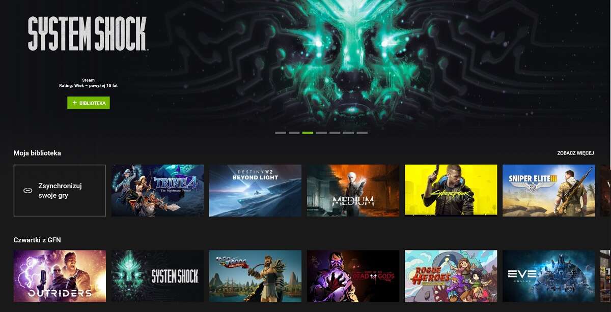 Na deser uruchomiłem sobie demo Outriders oraz System Shock. Czego normalnie bym nie zrobił, bo szkoda byłoby mi czasu na ich pobieranie. Co też warto podkreślić, gry na GeForce NOW uruchamiają się błyskawicznie. Tutaj ponownie mój komputer dostaje po głowie od usługi NVIDIA.