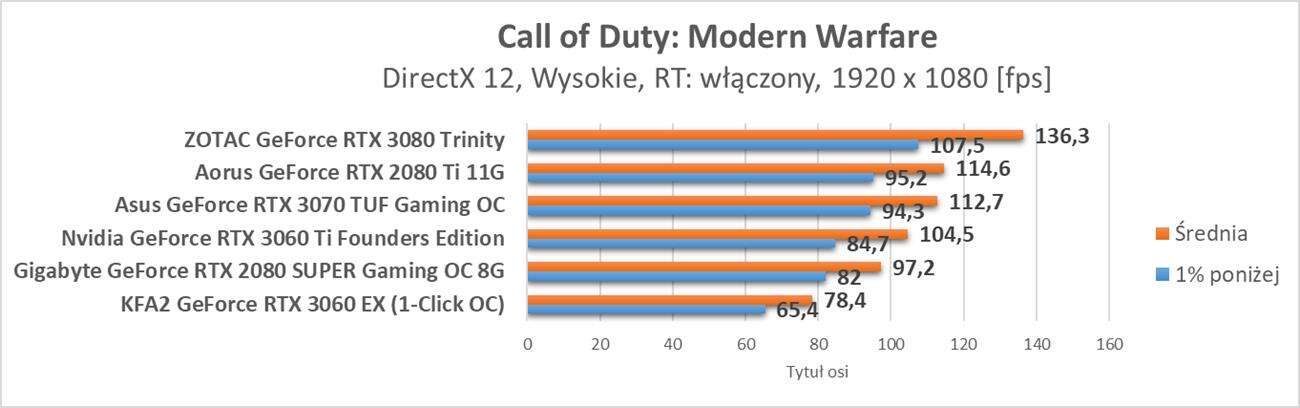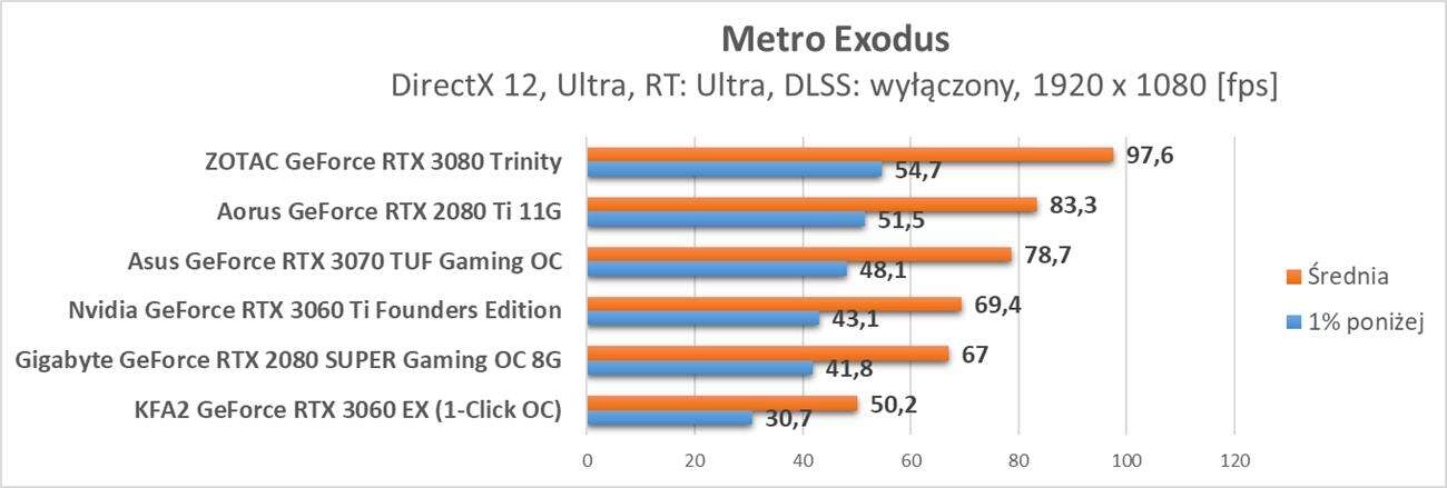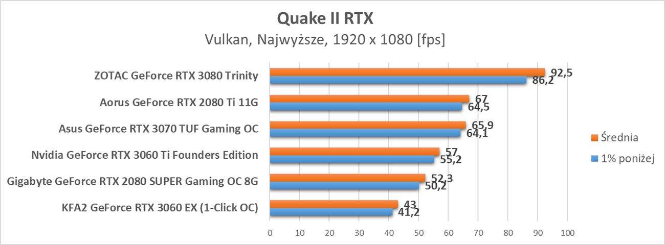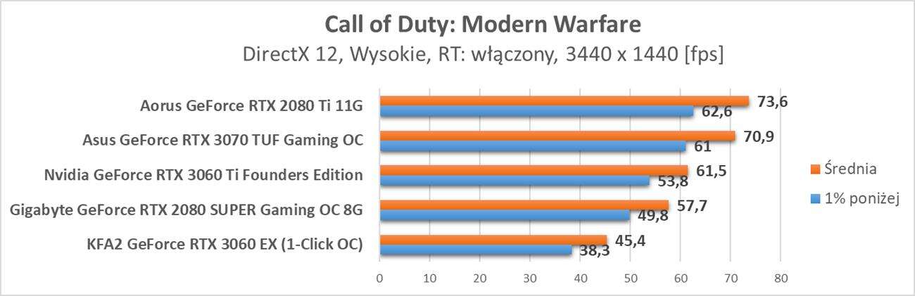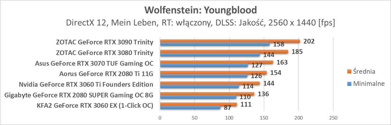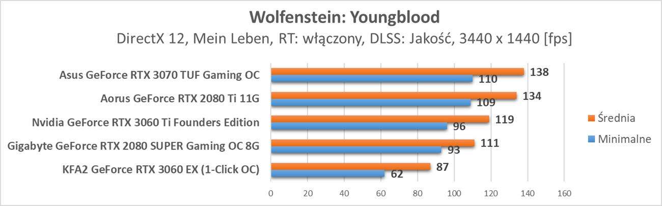 Testy przeprowadziłem na 5 grach: Wolfenstein: Youngblood, Control, Metro Exodus, Quake II RTX oraz Call of Duty: Modern Warfare. Powinny one dobrze pokazać jak ray tracing i DLSS sprawują się na tej karcie. Sterowniki dla RTX 3060 to Nvidia Game Ready 461,64. Warto też zwrócić uwagę jak karty wypadają w rozdzielczości 3440 x 1440 px przy włączonych omawianych opcjach.