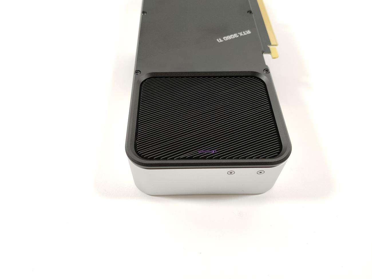 Karta wygląda naprawdę dobrze – przynajmniej moim zdaniem. Nie ma ona podświetlenia RGB, ale jest bardzo elegancka. Połączenie koloru srebrnego z czarnym daje więc radę. Plusem jest też tutaj żebrowany radiator wokół wentylatorów. Zaskoczony jestem też jakością wykonania. Jest ono naprawdę niezłe i po chwili jej trzymania w rękach czuć, że jest ona zbudowana z wysokiej jakości materiałów. Karta ma bardzo porządne wykończenie oraz sporo waży. Grafikę obiega ramka wykonana z aluminium, a backplate jest metalowy. Nie można więc mówić o oszczędzaniu na materiałach.