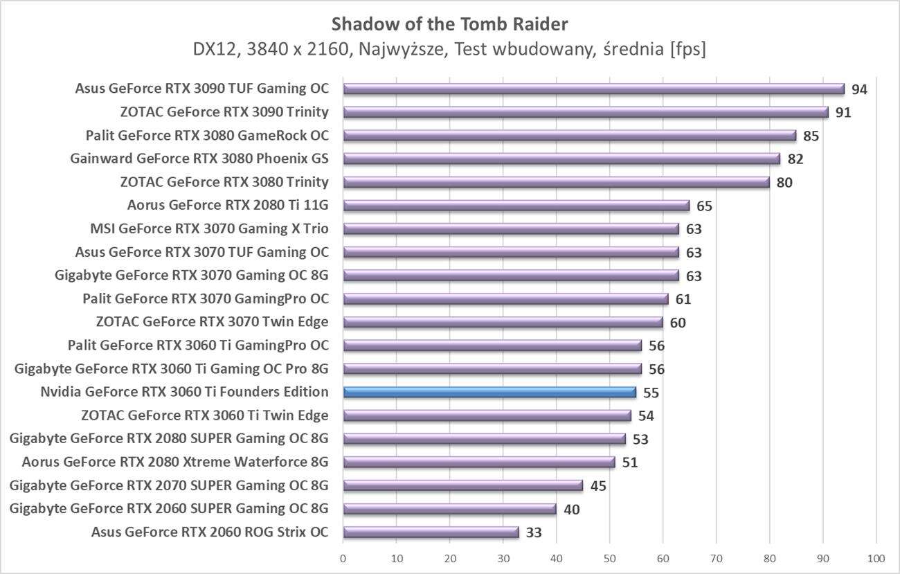 Testy Nvidia GeForce RTX 3060 Ti Founders Edition w rozdzielczości 3840 x 2160