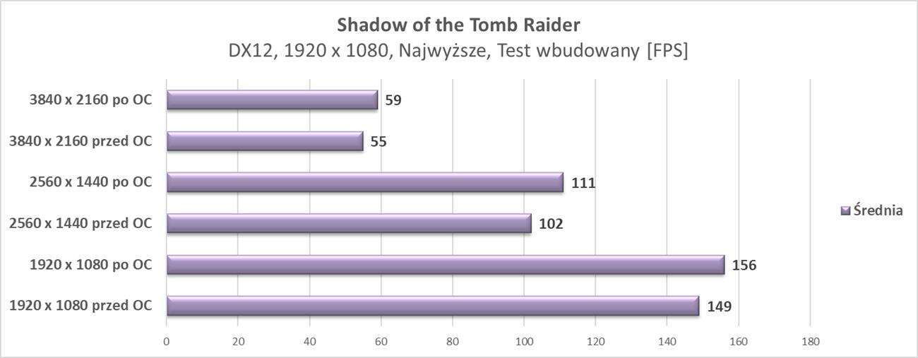 Testowana karta świetnie radzi sobie w pierwszej z rozdzielczości. Wyniki zawsze są powyżej 60 fps co jest spodziewanym, ale nadal świetnym rezultatem.