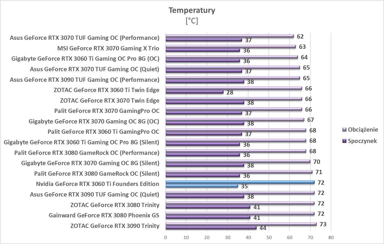 Temperatury, głośność, pobór mocy Nvidia GeForce RTX 3060 Ti Founders Edition