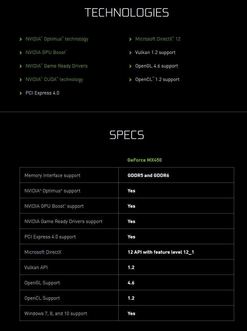 Co ciekawe mimo ogłoszenia MX450 sama specyfikacja jest zbytnio nieznana. Strona karty mówi o pamięciach GDDR6 lub GDDR5 i to tak naprawdę wszystko, co o niej wiemy. Model z pamięciami GDDR5 może być czymś innym, opartym na starszej architekturze Pascal.