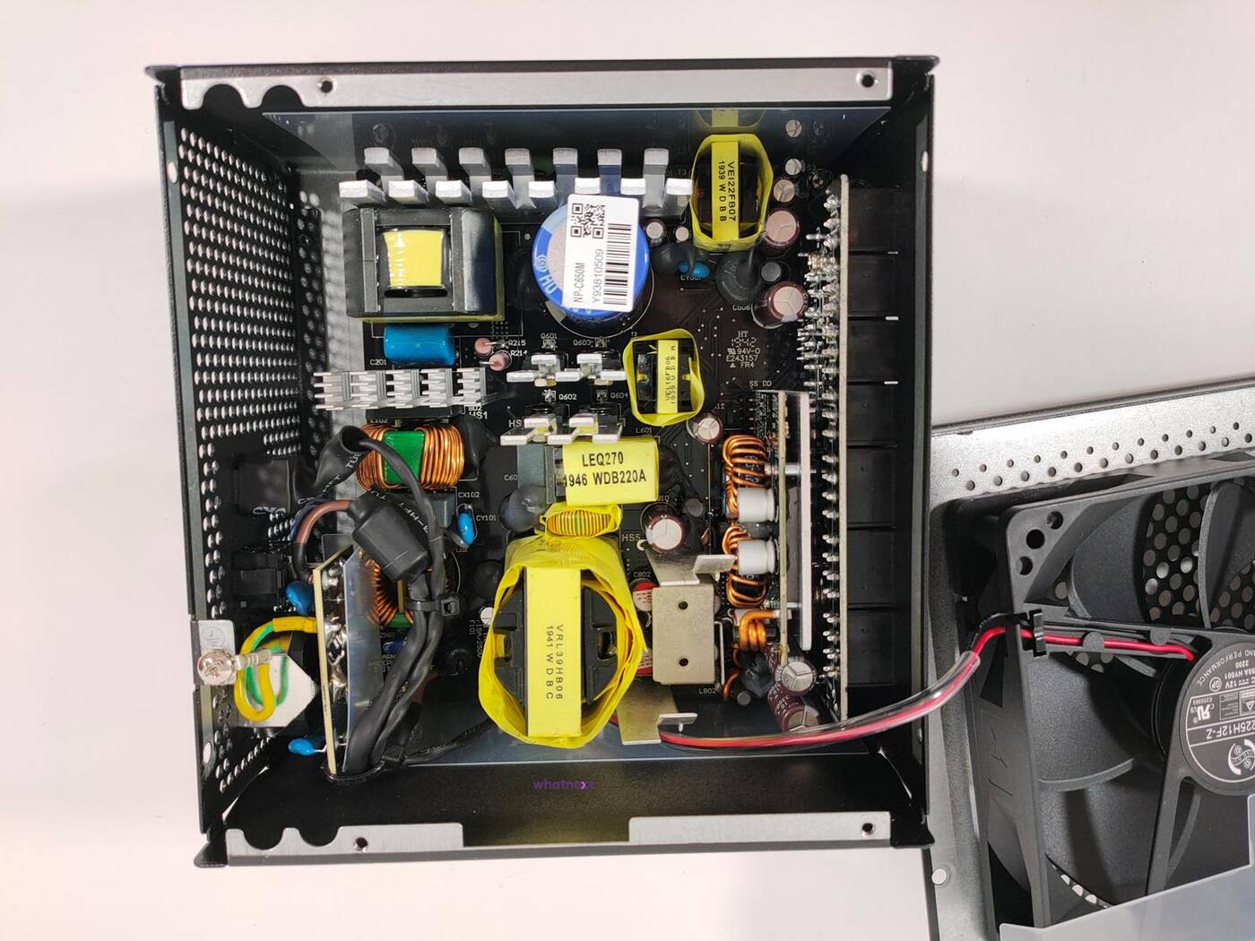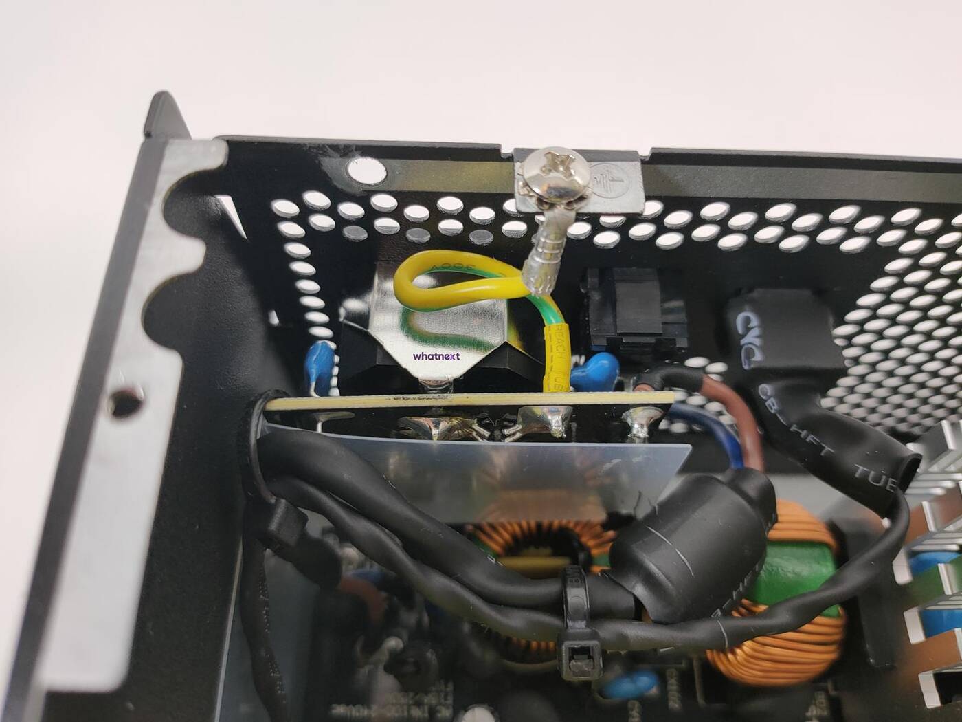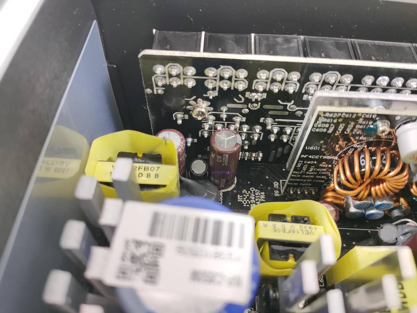 Samo wnętrze zaprojektowane jest przez SeaSonic, mowa więc o bardzo wysokiej jakości. Największy kondensator ma parametry 470 uF, 400 V i może pracować w temperaturze do 105°C. Zasilacz ma oczywiście aktywne PFC. Co ciekawe producent nigdzie nie wspomina o zastosowanych zabezpieczeniach, ale z pewnością jest to OVP, UVP, OTP czy SCP.
