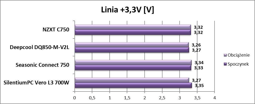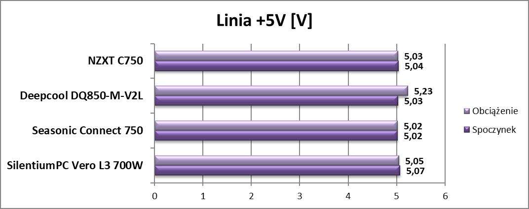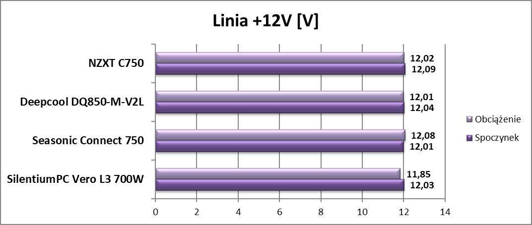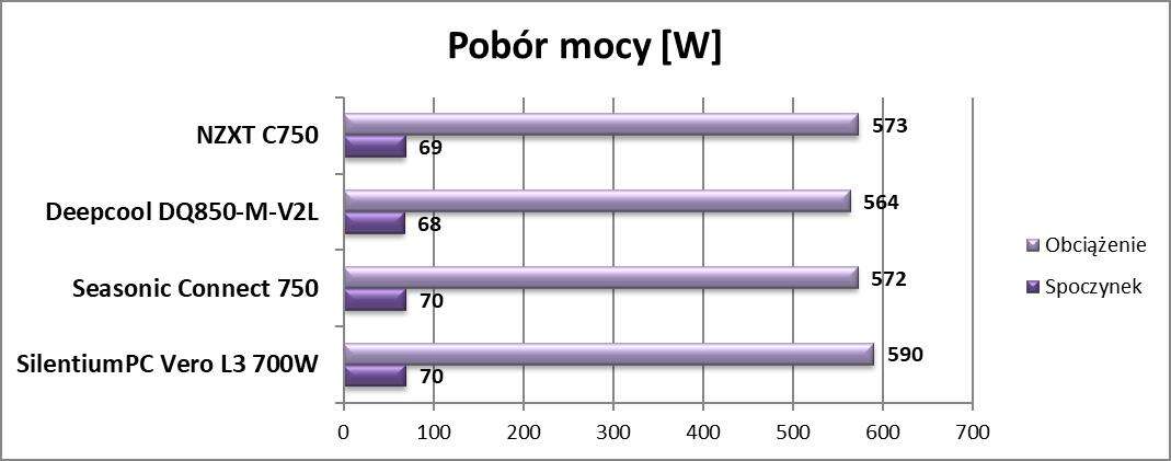 Zasilacz wypadł w testach znakomicie. Napięcia są prawie idealne i pod obciążeniem nie ma zbyt dużego ich spadku. Wyniki są więc naprawdę znakomite. NZXT C750 to cicha konstrukcja w spoczynku i pod obciążeniem. Jest też ona stosunkowo chłodna. Pobór mocy to kolejny plus NZXT C750. Dzięki odznaczeniu 80 Plus Gold jest on dosyć niski. Dla obciążenia 10% sprawność wynosi 85,59%, dla 20% – 89,88, 50% – 90,64%, a dla 100% – 87,55%.