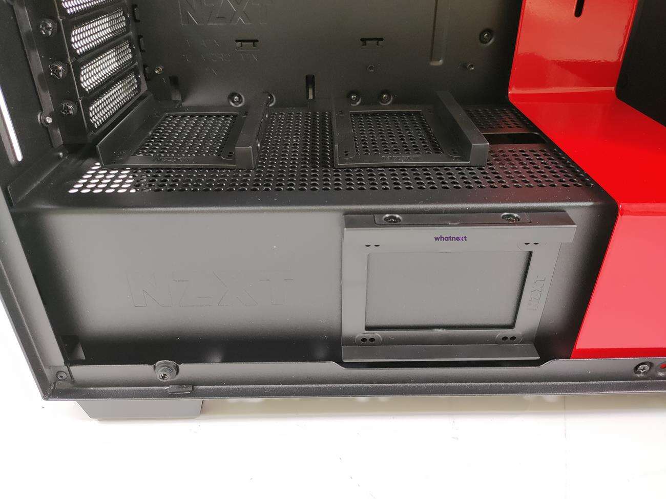 Łącznie w NZXT H700i zmieścicie aż siedem dysków 2,5 cala oraz 2+1 dysk 3,5 cala. Miejsca znajdują się w koszyku na dyski, za płytą główną oraz na wspomnianej piwnicy.