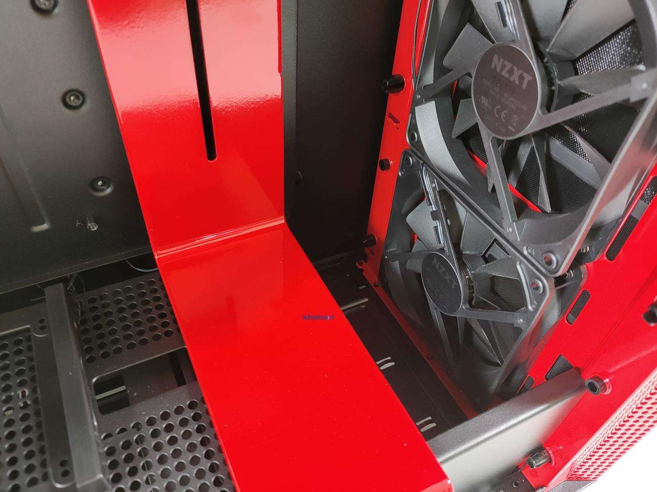 W NZXT H700i zmieścicie karty graficzne o długości do 413 mm i chłodzenia procesora o wysokości do 185 mm. W piwnicy jest miejsce na zasilacz, który stawiany jest na antywibracyjnych nóżkach. Jego długość ograniczona jest jedynie położeniem koszyka na dyski, więc tak naprawdę każda konstrukcja w środku się zmieści.