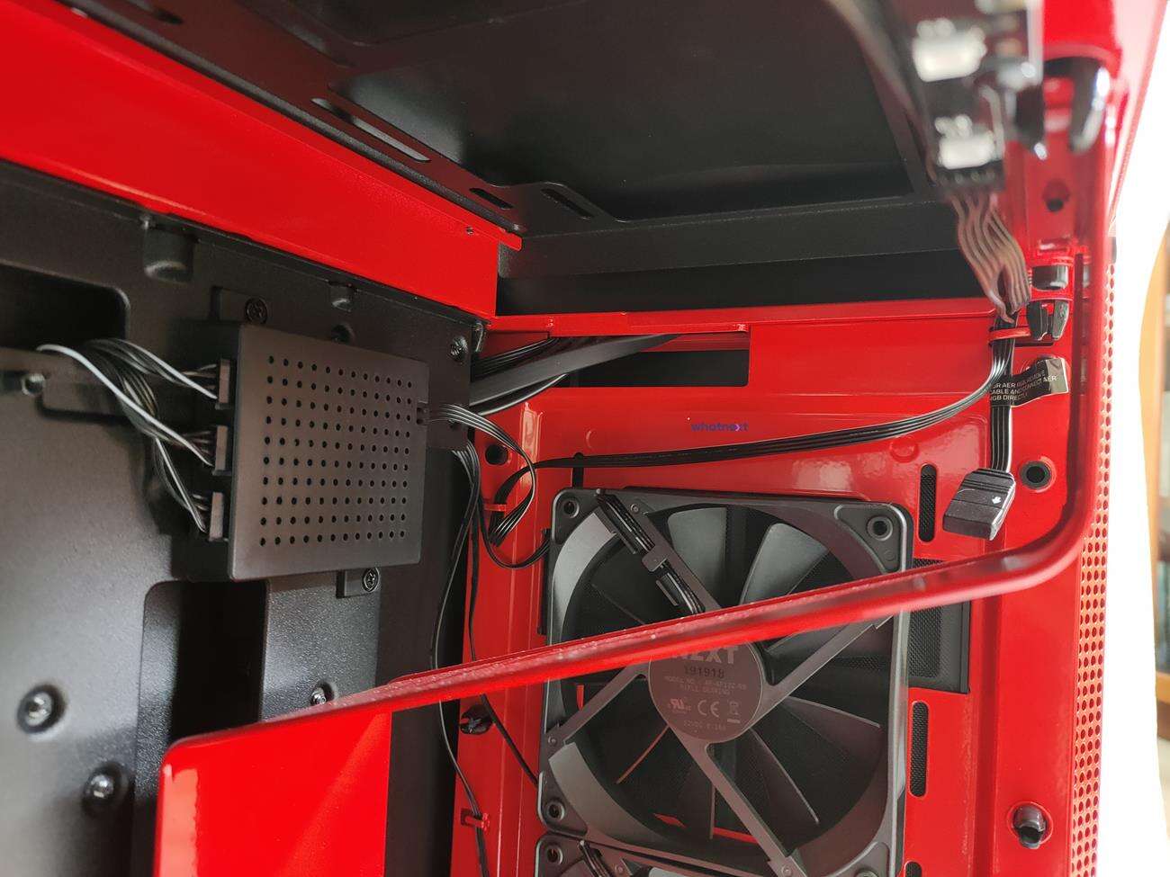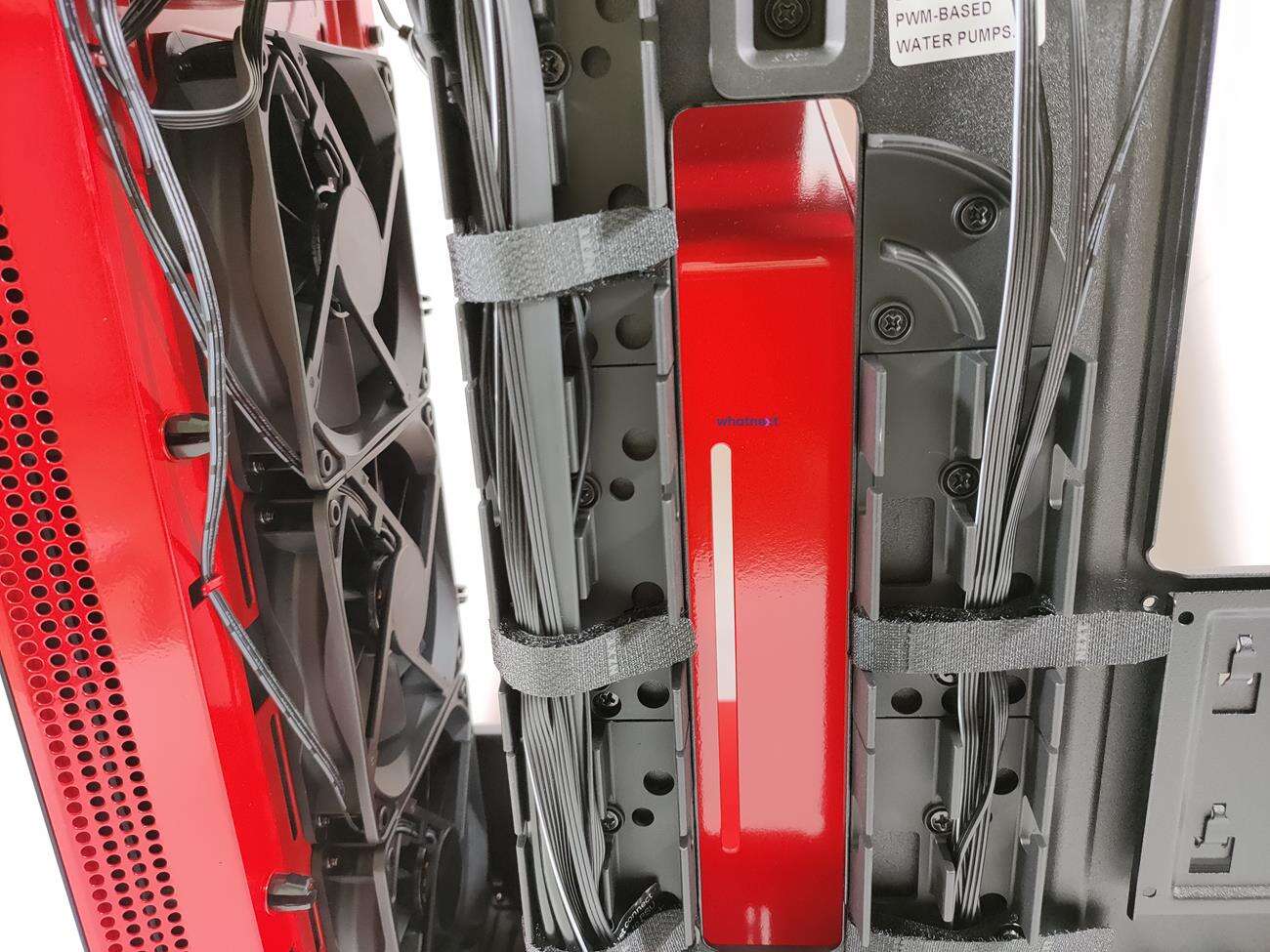 NZXT H700i jest też bardzo przyjazna chłodzeniu cieczą. Z przodu zmieści się chłodnica 280 lub 360 mm o grubości do 60 mm, na górze zmieści się chłodnica o takiej samej szerokości, ale o grubości do 30 mm. Po prawej od płyty jest też miejsce na osobny rezerwuar czy pompkę, więc nie będzie problemów nawet z customowym chłodzeniem cieczą.