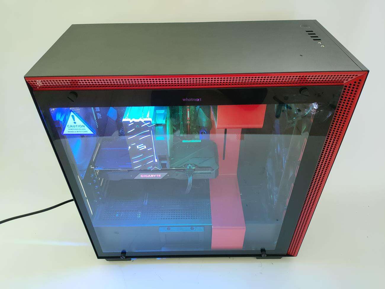 Obudowa wygląda bardzo dobrze. Tak naprawdę wyróżniają ją paski RGB, które można dowolnie zamontować. Bardzo dobrze oświetlają one obudowę i świetnie widać je przez okno. Przód i góra jest cała zabudowana, co może się podobać, choć nie musi. Moim zdaniem jest to jednak bardzo eleganckie – NZXT H700i nie rzuca się w oczy wszechobecnym RGB, co jest plusem.