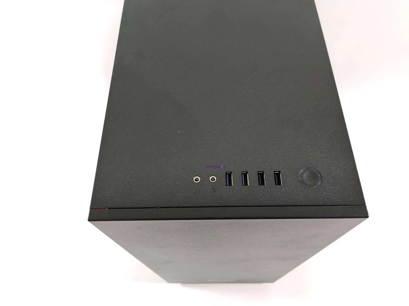 Blisko przodu jest ładnie wkomponowany w obudowę panel wejścia/wyjścia. Do dyspozycji są dwa złącza USB 2.0, dwa USB 3.0, wejście na mikrofon i wyjście na słuchawki. Jest też tylko jeden przycisk – startu komputera.