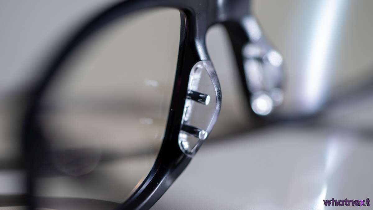 Okulary trafiły do mnie w testowej wersji uniwersalnej. Nie były robione na zamówienie, ani w żaden sposób dopasowywane. Okazały się jednak bardzo wygodne. To zasługa względnie cienkich nauszników, które nie są przesadnie sztywne i nie przyciskają się do głowy. Myślałem, że metalowe końcówki będą wżynać się w skórę, ale taki problem nie występuje.