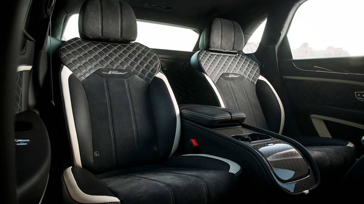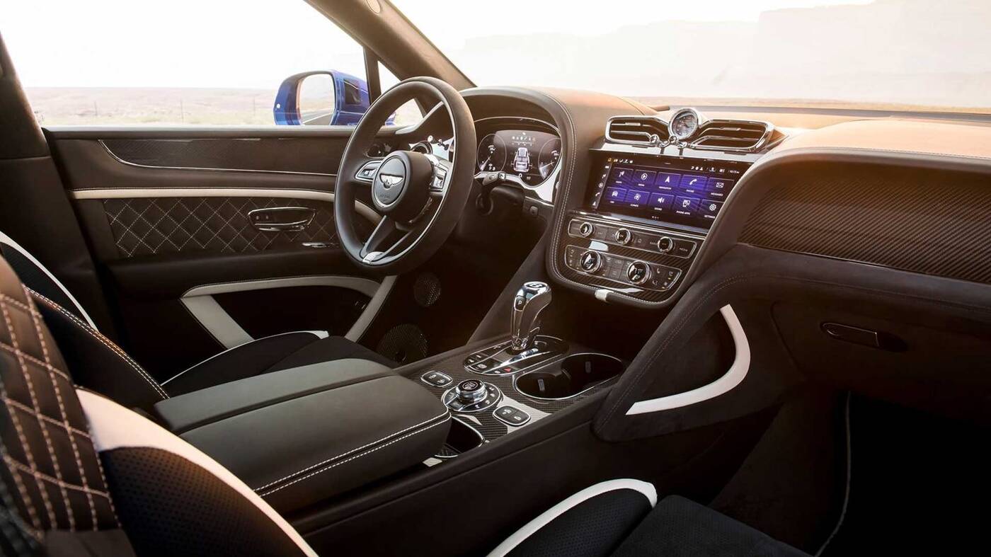 Oprócz nowych przyjemnych materiałów i lepszego wykończenia wewnątrz, Bentayga Speed 2021 otrzymuje również zaktualizowany pakiet informacyjno-rozrywkowy. Nowy 10,9-calowy ekran dotykowy jest standardowo wyposażony w bezprzewodowy Apple CarPlay, a nowy, w pełni cyfrowy panel instrumentów oferuje duży widok mapy i multimediów lub bardziej tradycyjny duet dwóch wskaźników.
