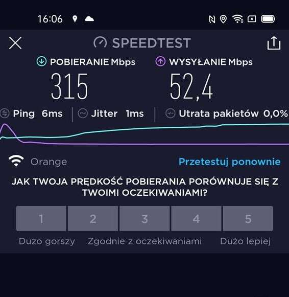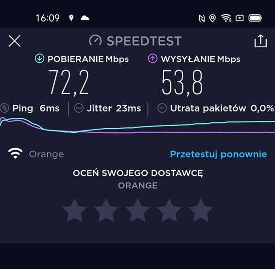 Łączność WiFi jest bardzo dobra. Smartfon bez problemów wyciągnął maksimum z mojego łącza zarówno w paśmie 2,4 GHz i 5 GHz. Również zasięg LTE we Wrocławiu był bez uwag. Prędkości także nie odbiegały od tego, co oferuje konkurencja.