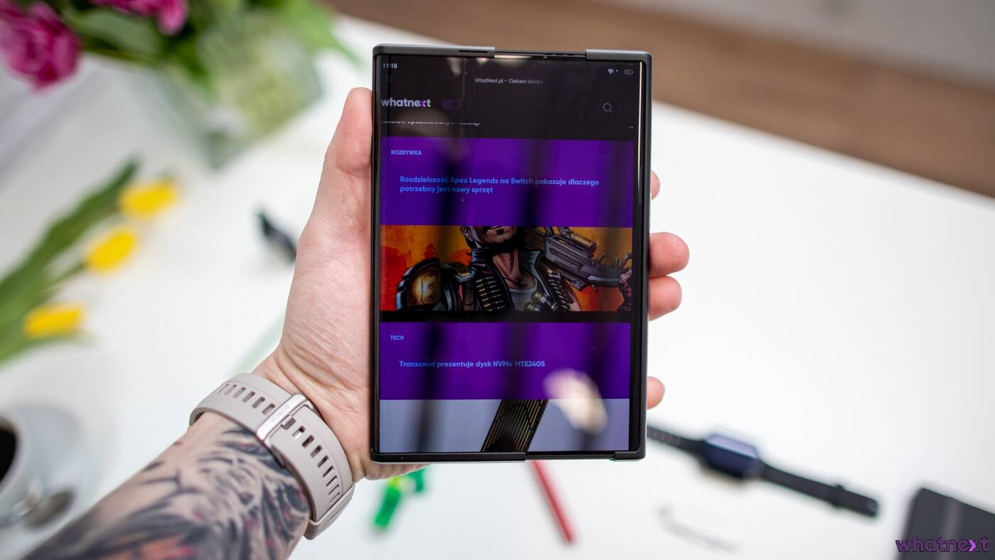 Sama koncepcja zwijanego ekranu jest bardzo dobra. Efektowna, ale jednocześnie bardzo użyteczna. Dzięki takiej konstrukcji smartfon nie jest przesadnie duży, a rozkłada się do wymiarów składaków, takich jak Galaxy Z Fold2, czy Mate X2.
