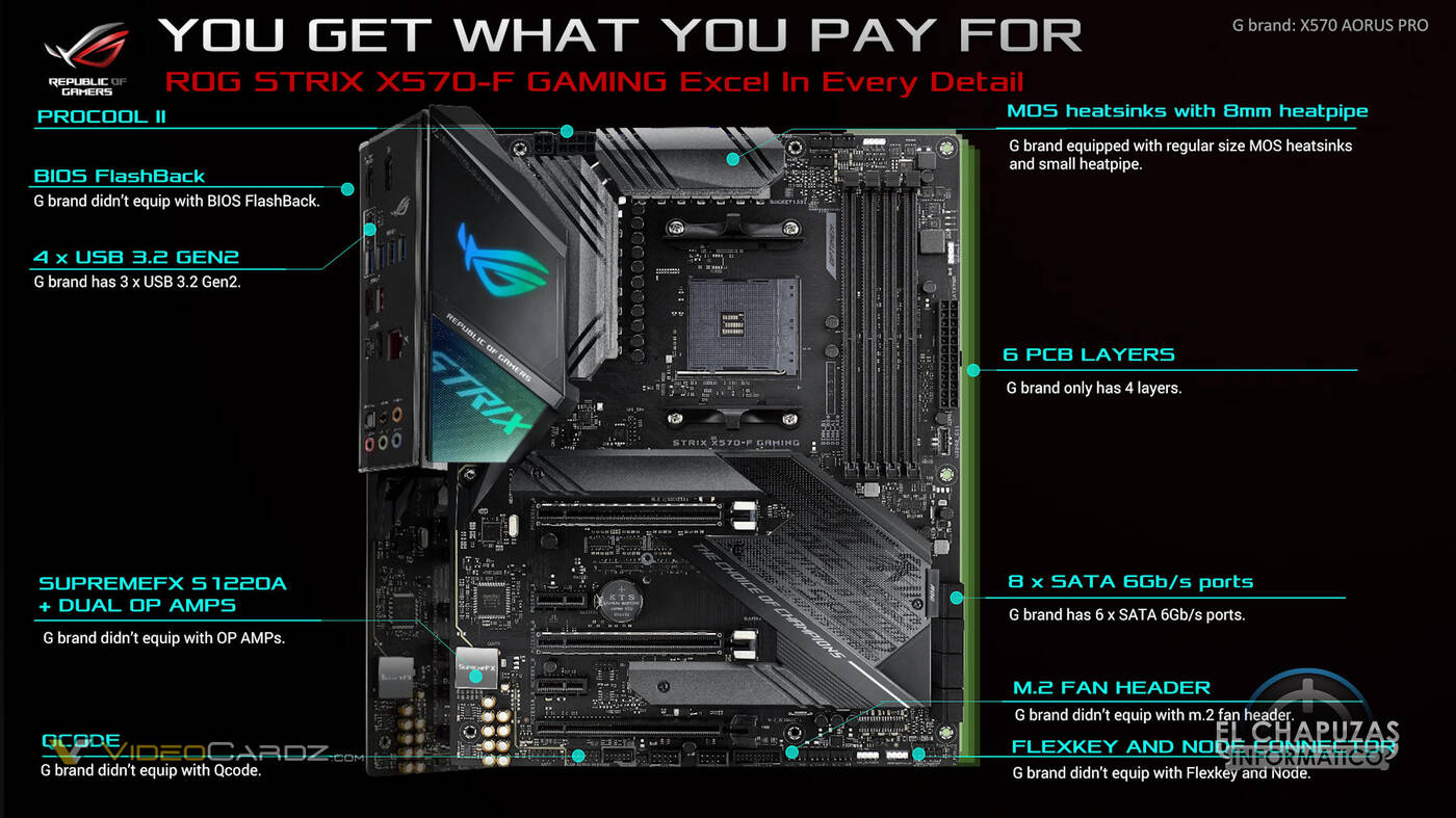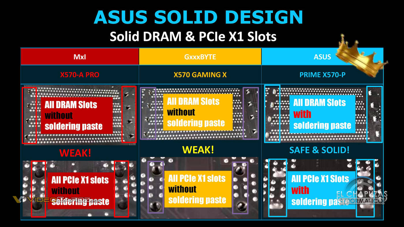 Wróćmy jednak do głównej części historii, bo prezentacja ASUSa jasno wskazuje na liczne braki w modelach konkurencji, kiedy porównujemy je z modelami płyt głównych w jego ofercie. Doszło nawet do tego, że MSI wraz z Gigabyte poprosiło AMD, aby zajęło się tą sprawą. Gigant skontaktował się następnie z ASUSem „sugerując”, że byłoby miło, gdyby te porównania zniknęły z sieci (stąd też nie mogę potwierdzić, czy są prawdziwe), więc zniknęły… aby następnie pojawić się w serwisach technologicznych. Tak czy inaczej – zapraszam do lektury: