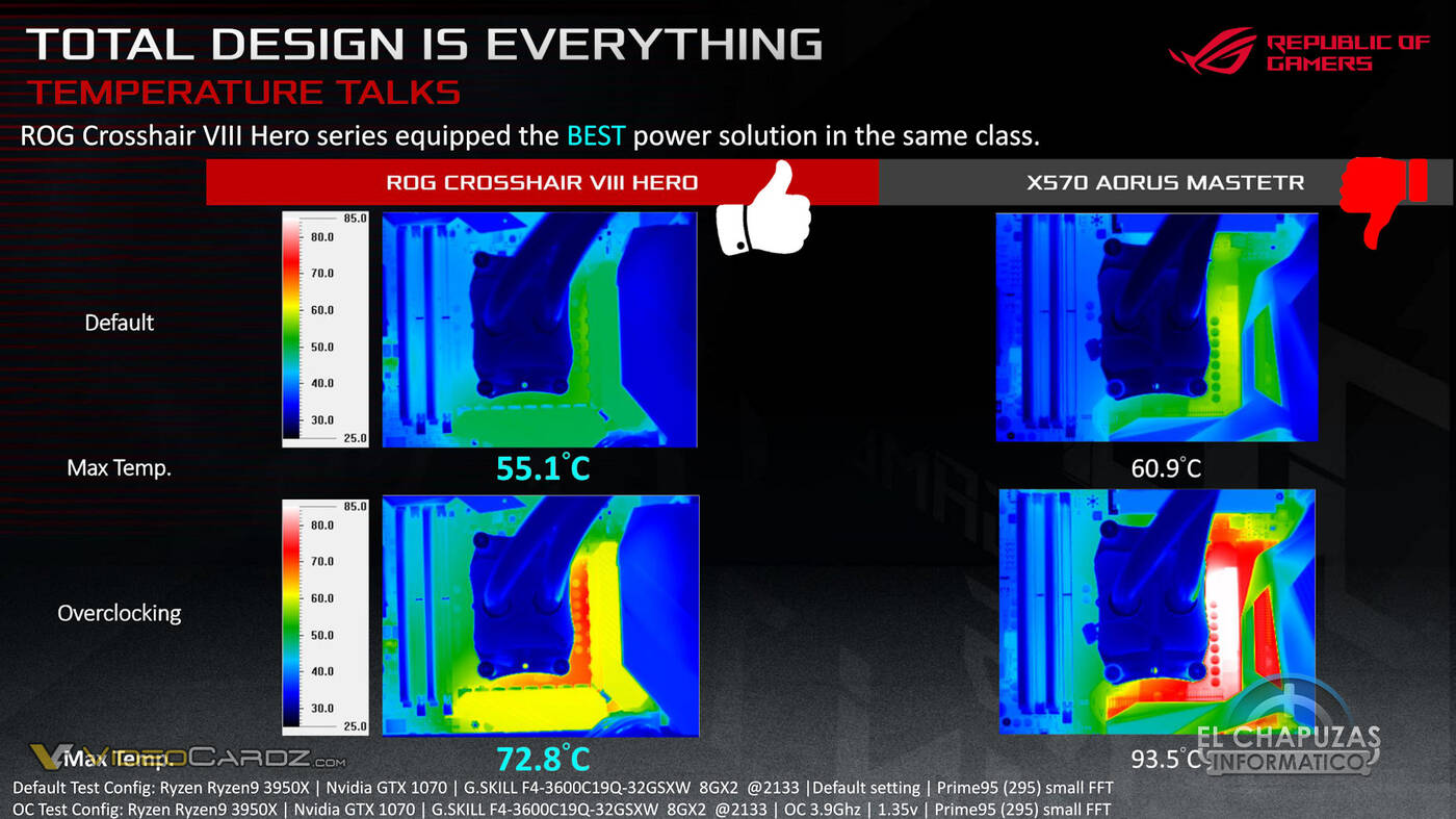 To z kolei powinno nam od razu zapalić czerwoną lampkę i poddać wszelkie informacje w wątpliwość i choć sugeruję to w przypadku wyników testów (m.in. osiąganej temperatury), to ASUS nie naciągał prawdy w przypadku porównania poszczególnych płyt face-to-face. Zmanipulować danych technicznych przecież nikt nie może.