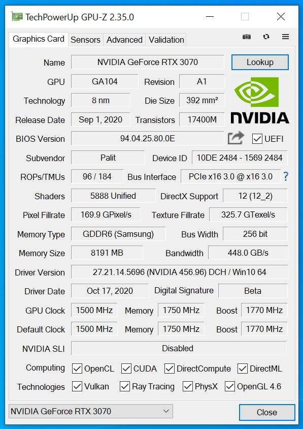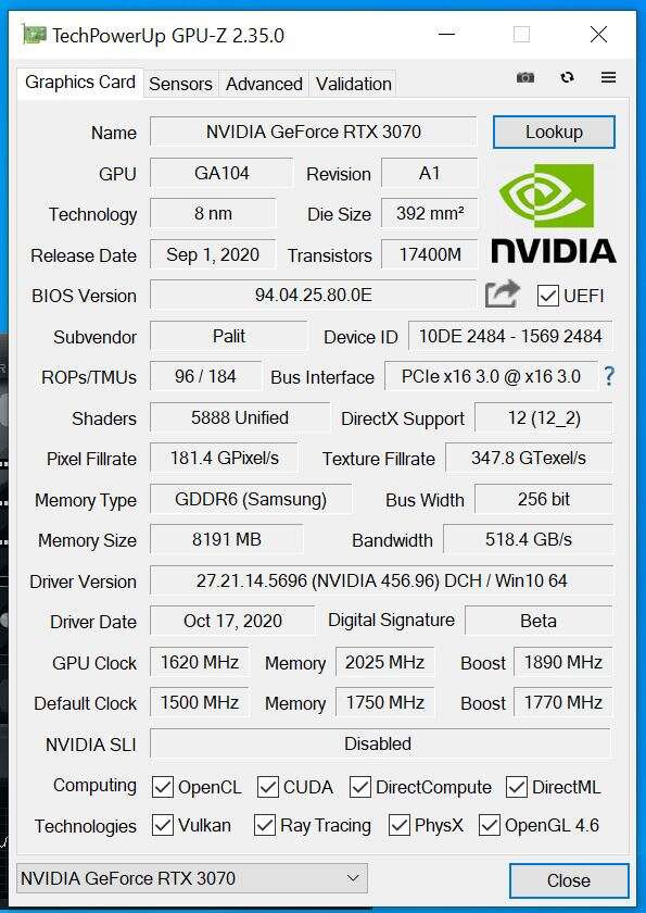 Podkręcanie Palit GeForce RTX 3070 GamingPro OC