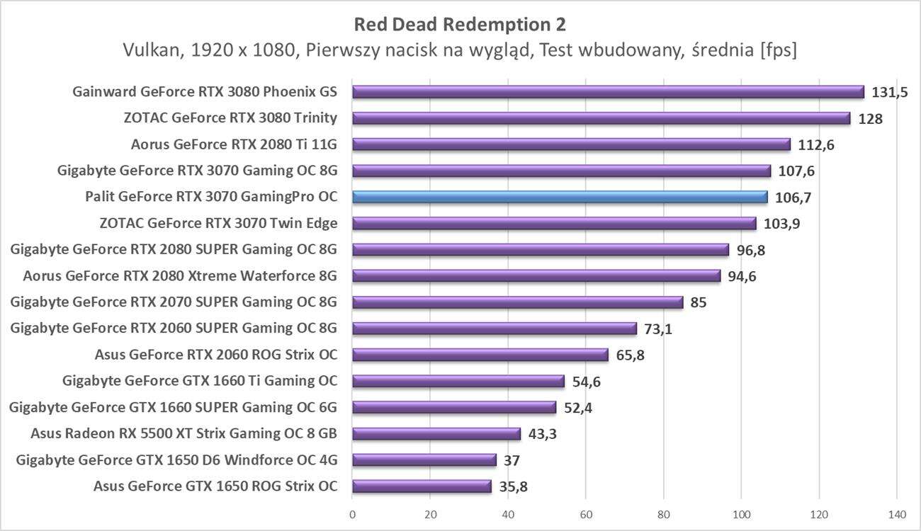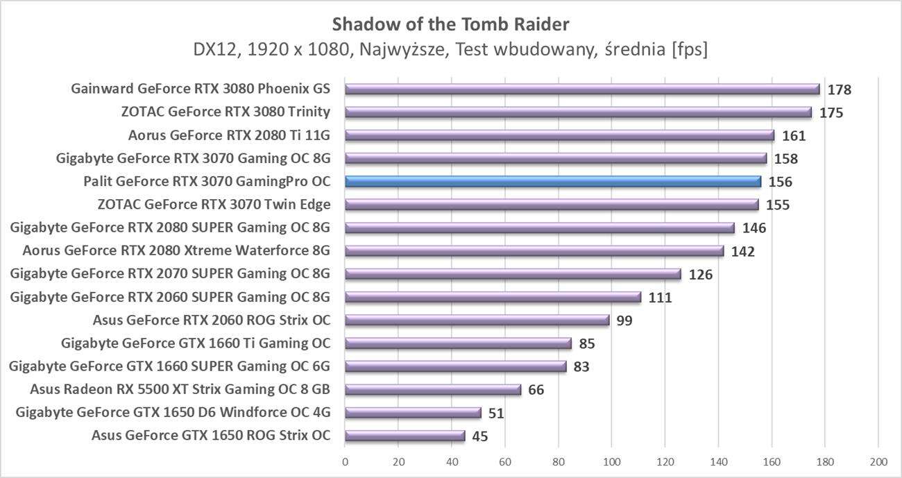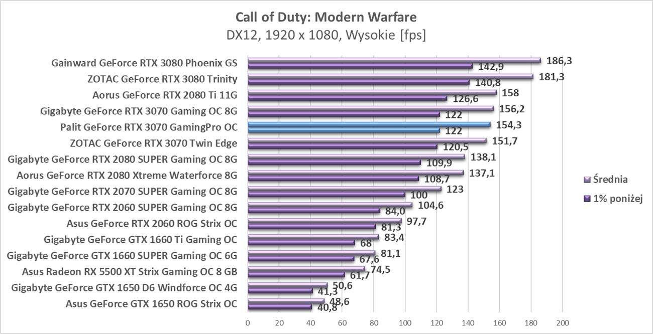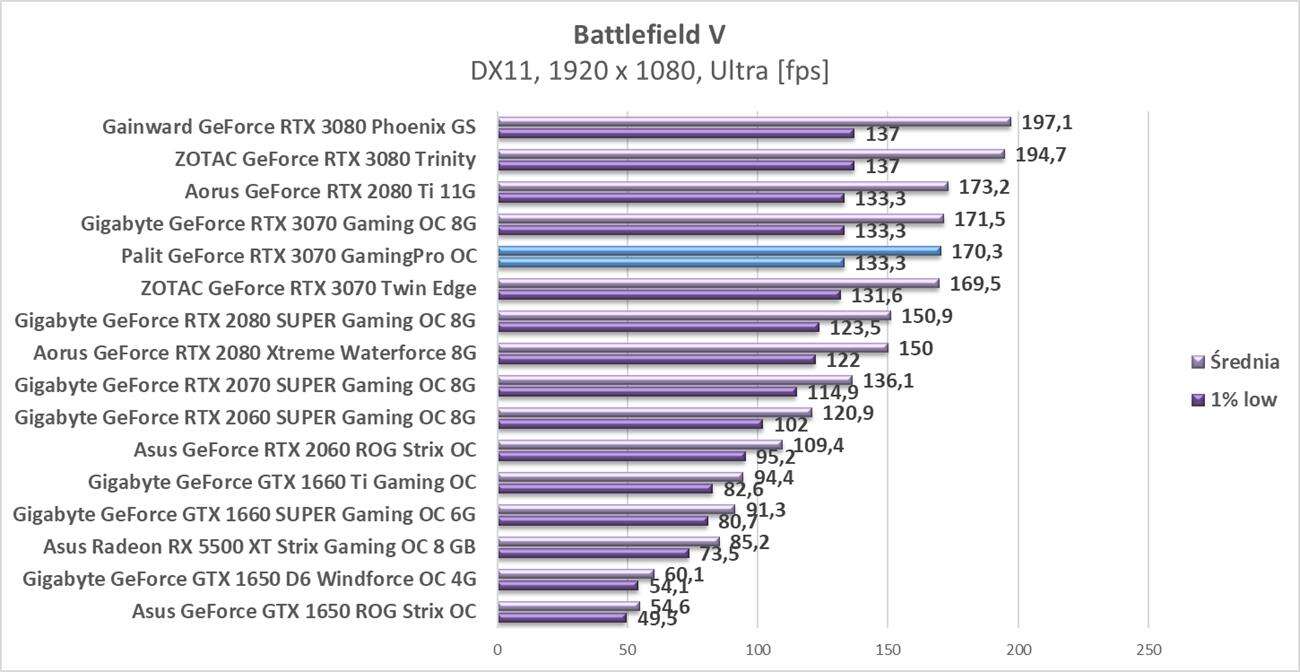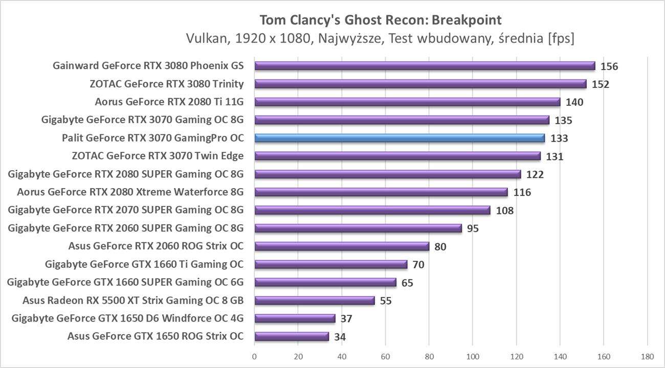 Testy Palit GeForce RTX 3070 GamingPro OC w rozdzielczości 1920 x 1080