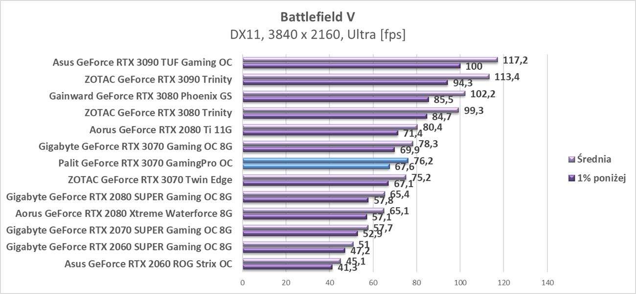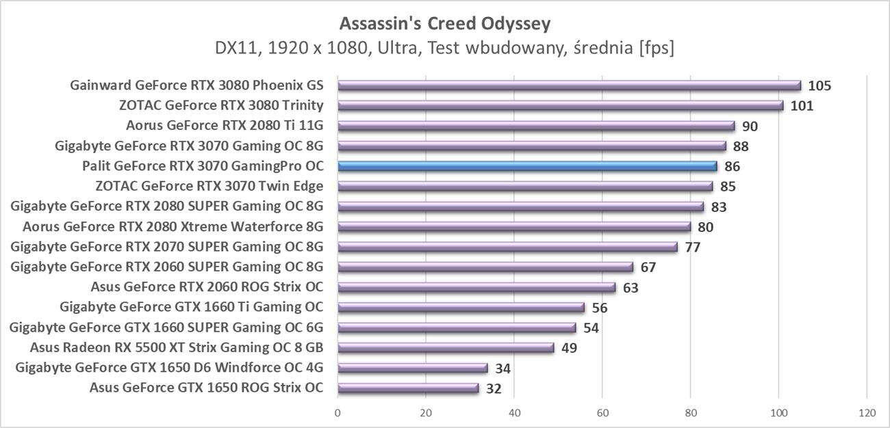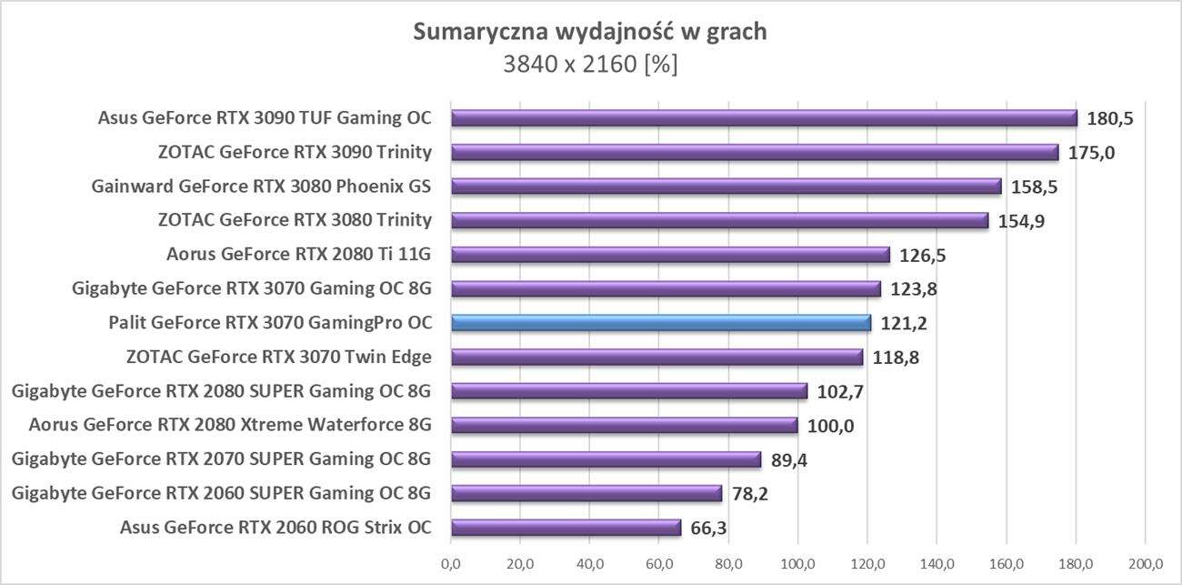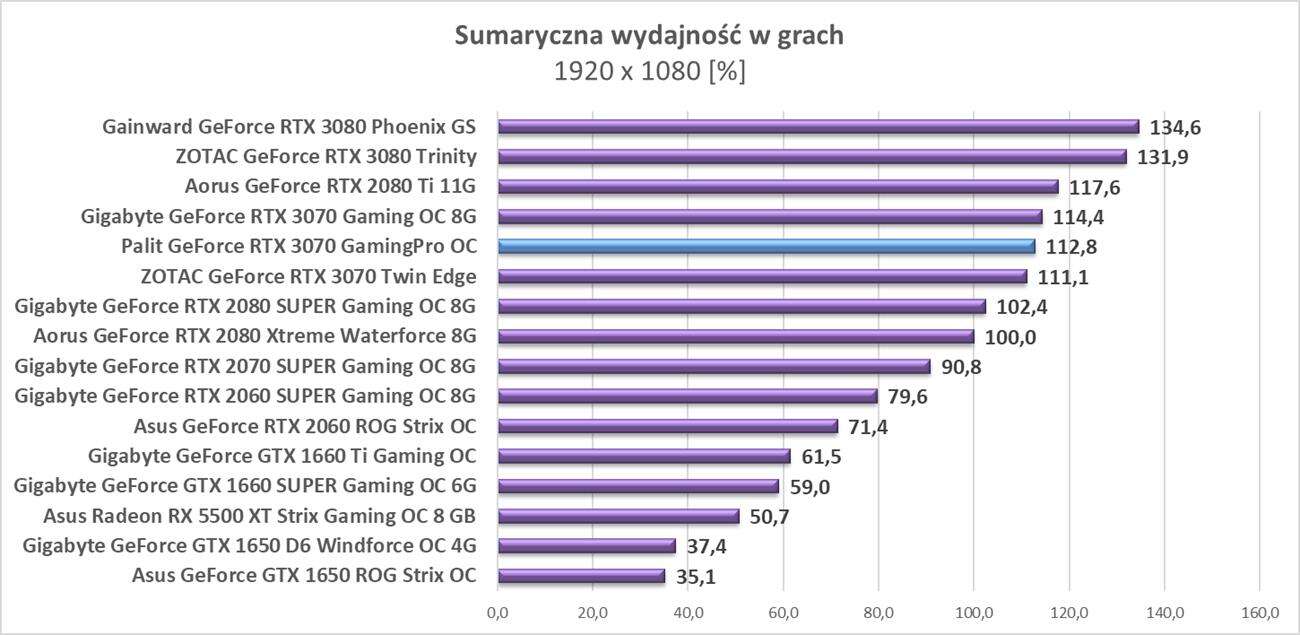 Sumaryczna wydajność Palit GeForce RTX 3070 GamingPro OC
