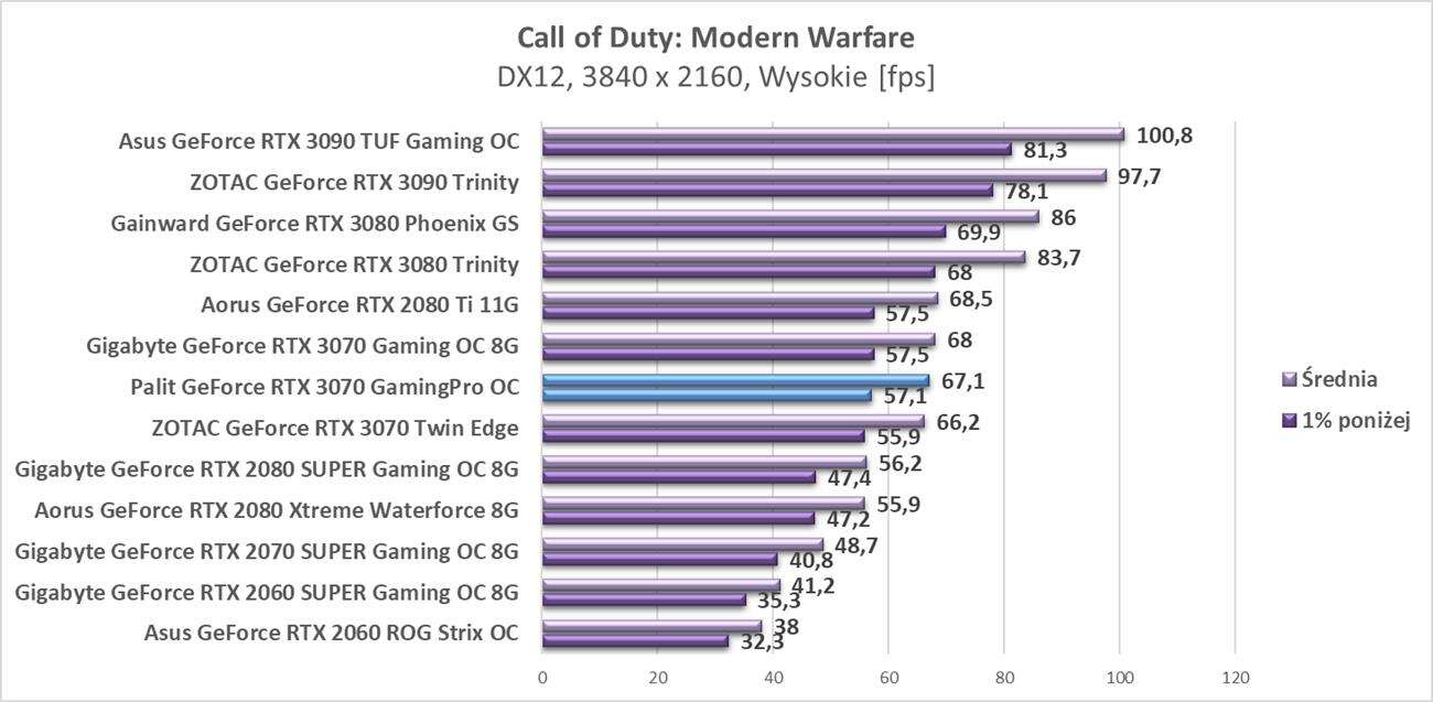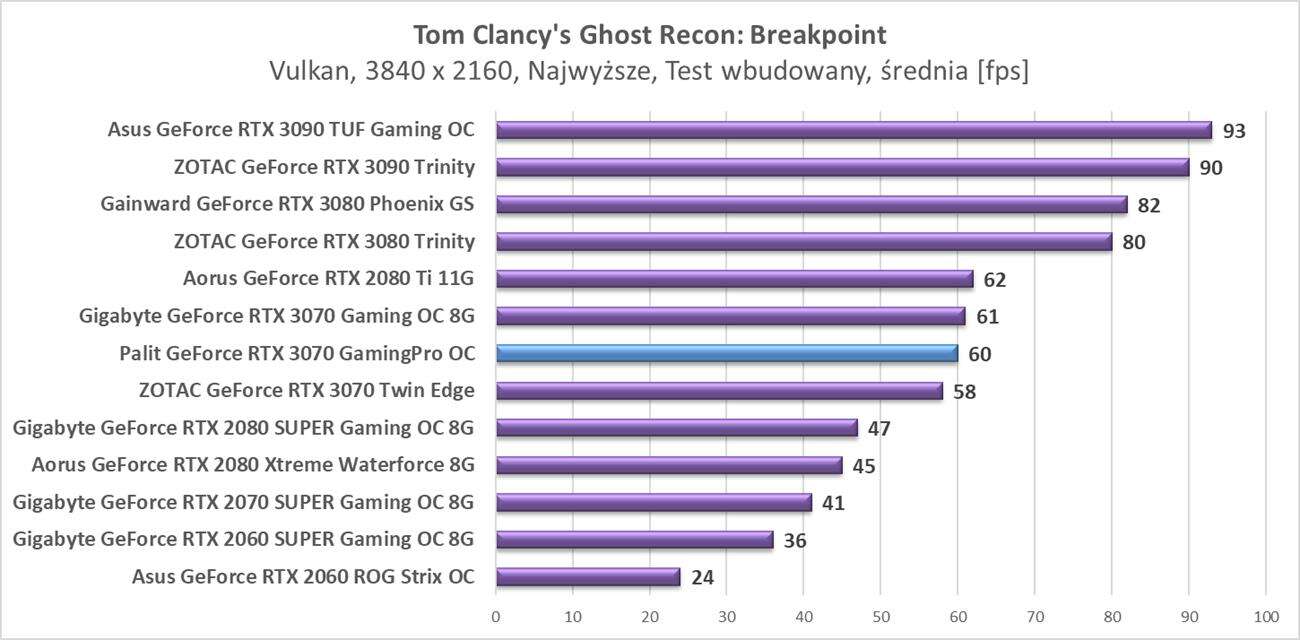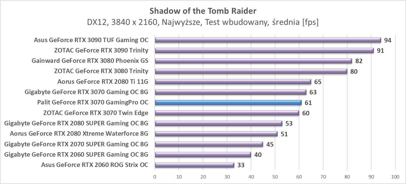Testy Palit GeForce RTX 3070 GamingPro OC w rozdzielczości 3840 x 2160
