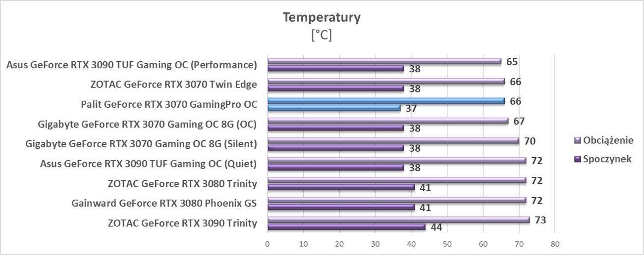 Temperatury, głośność, pobór mocy Palit GeForce RTX 3070 GamingPro OC