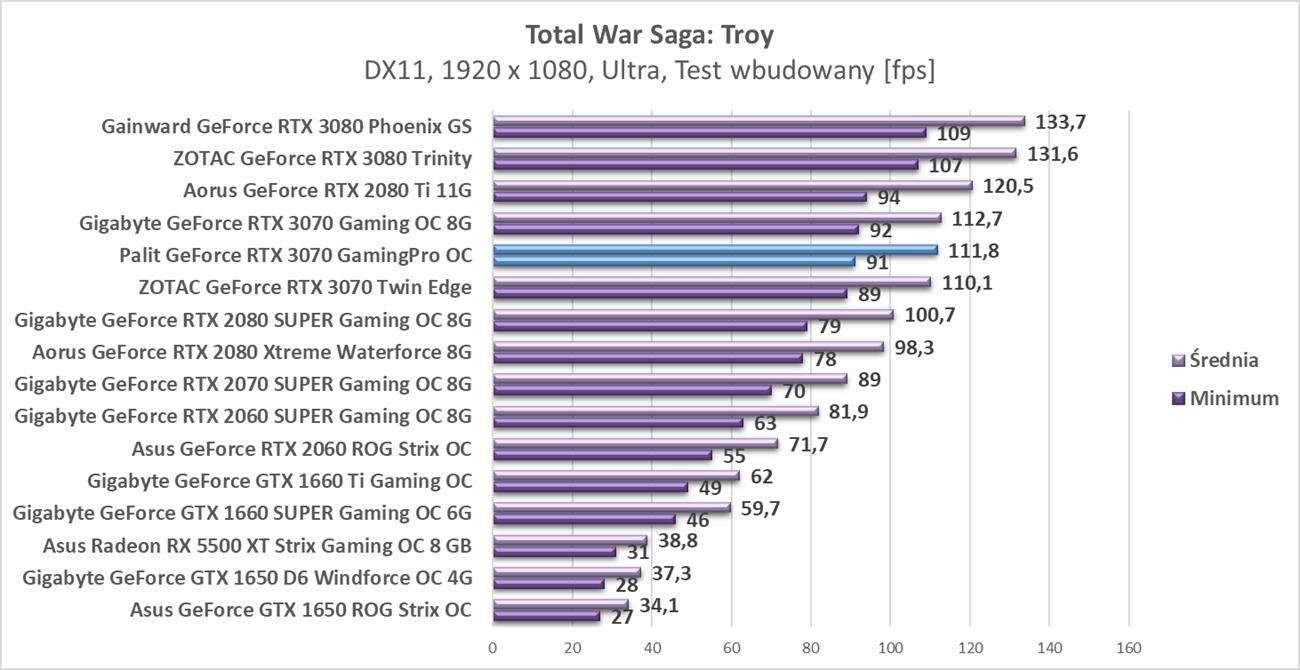 Karta notuje znakomite wyniki w grach. Są one znacznie większe od RTX 2070 SUPER, więc w swojej cenie póki co grafika nie ma konkurencji. Jest to także w pełni godny następca poprzedniej generacji kart, co zresztą widać po rezultatach.