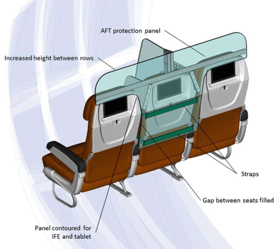 Nowoczesne samoloty mają wydajne systemy powietrzne, które zapobiegają zarażeniu całego pokładu przez jedną osobę, ale służby zdrowia zalecają dystans jednego metra, który jest trudny do osiągnięcia w klasie ekonomicznej, nawet przy pustym środkowym siedzeniu. Aby to poprawić, wpadłem na ten wymienny zestaw do nieużywanego fotela, który może być tymczasowo używany na czas pandemii.