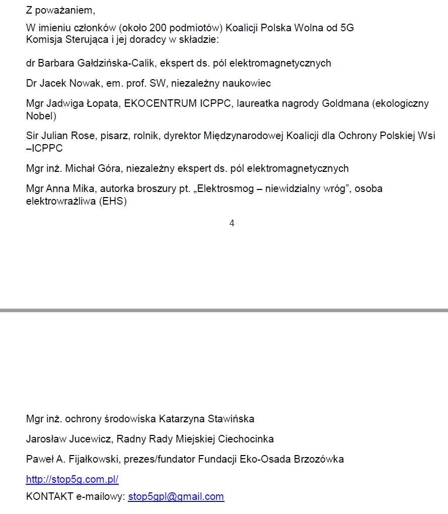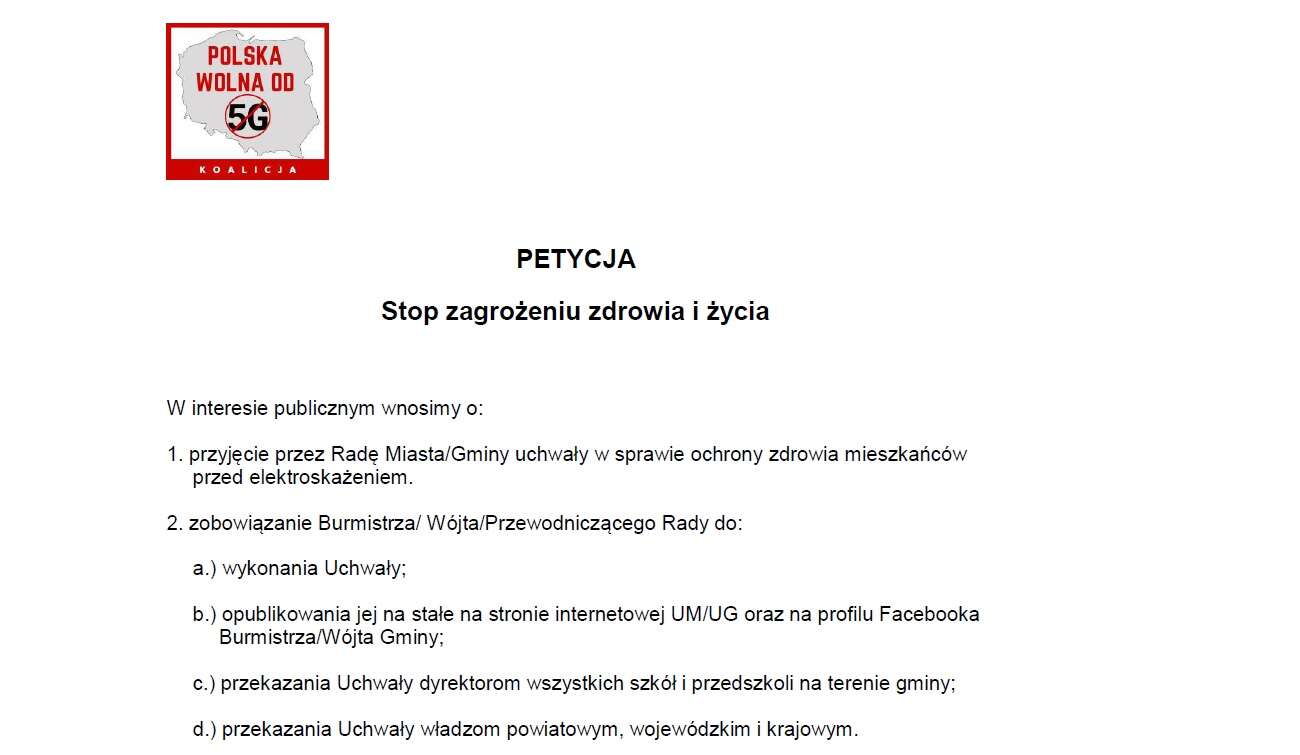 - przeprowadzenia kampanii informacyjnej mówiącej o szkodliwości pól elektromagnetycznych.