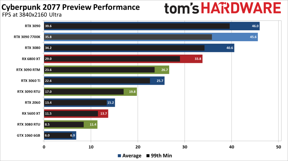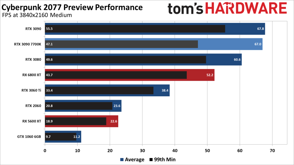 Testy wykonano w rozdzielczości Full HD px i 4K przy ustawieniach medium oraz w 4k przy Ultra. W ej ostatniej widać, że nawet RTX 3090 nie zapewnia średnio 60 fps. Przy 4K i ustawieniach Medium 60 fps zapewni Wam dopiero RTX 3080.