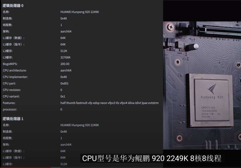 Wyposażony jest on w procesor Kunpeng 920 (8 rdzeni) i całość działa pod kontrolą 64 bitowego systemu UOS. Jest to chińska modyfikacja Linuksa. Całość ma także 16 GB pamięci RAM DDR 2666 MHz i 256 GB dysk SSD.