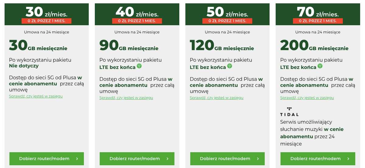Abonamenty Internetu mobilnego niezmiennie pozostały cztery. Podobnie jak ich ceny, które wynoszą – 30, 40, 50 oraz 70 zł.